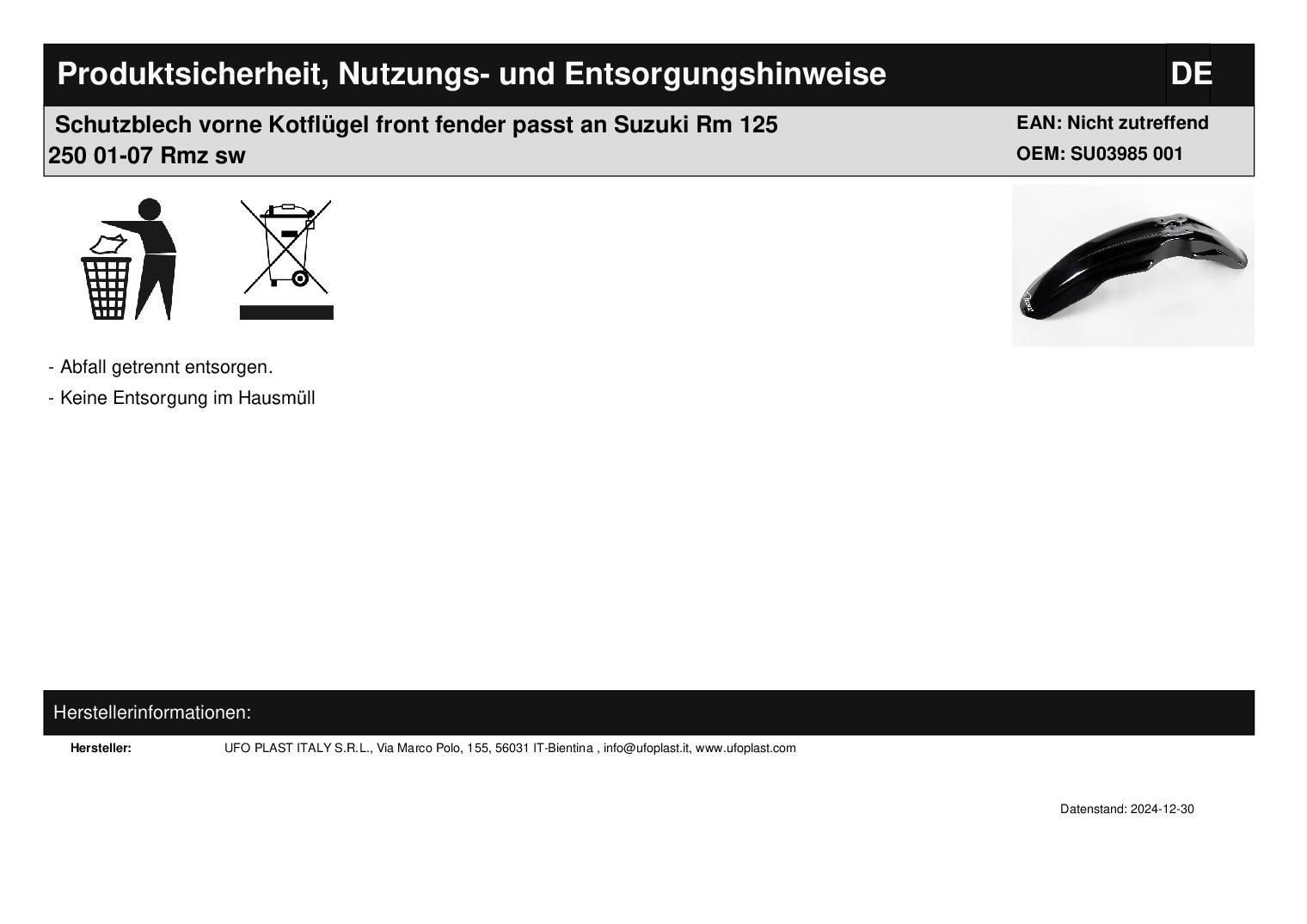 Schutzblech vorne Kotflügel front fender passt an Suzuki Rm 125 250 01-07 Rmz sw