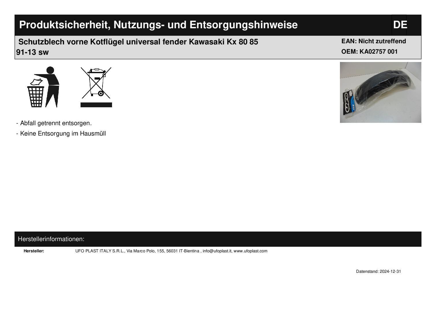 Schutzblech vorne Kotflügel universal fender Kawasaki Kx 80 85 91-13 sw