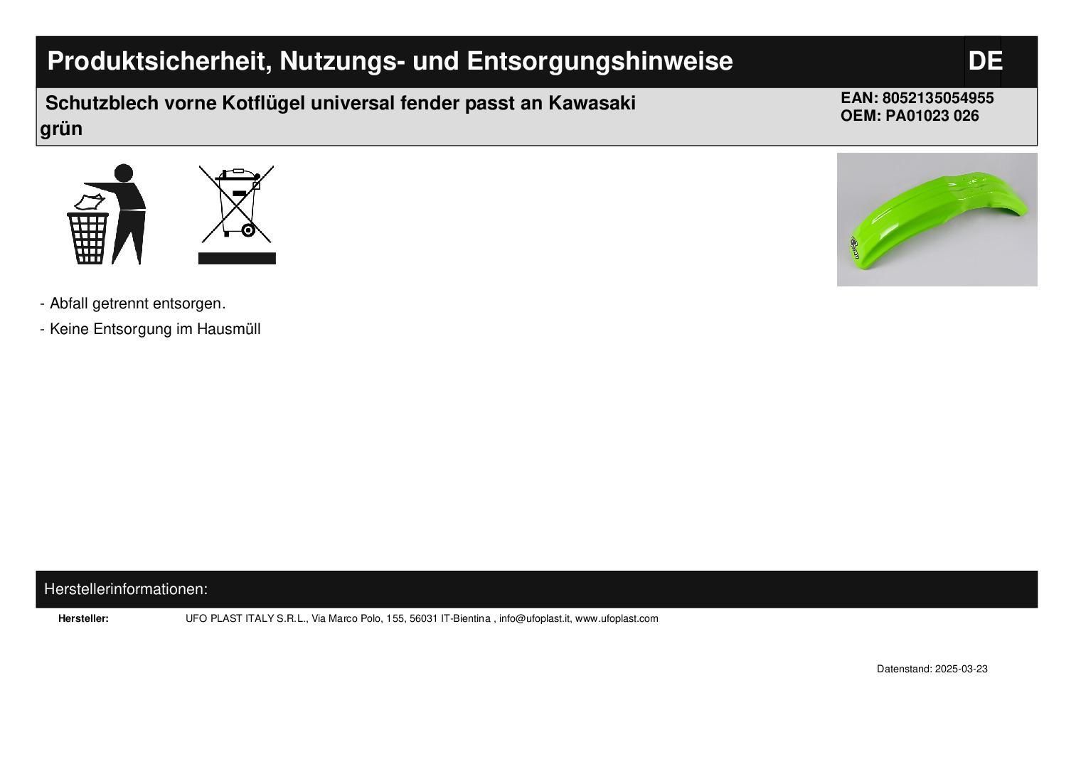 Schutzblech vorne Kotflügel universal fender passt an Kawasaki grün