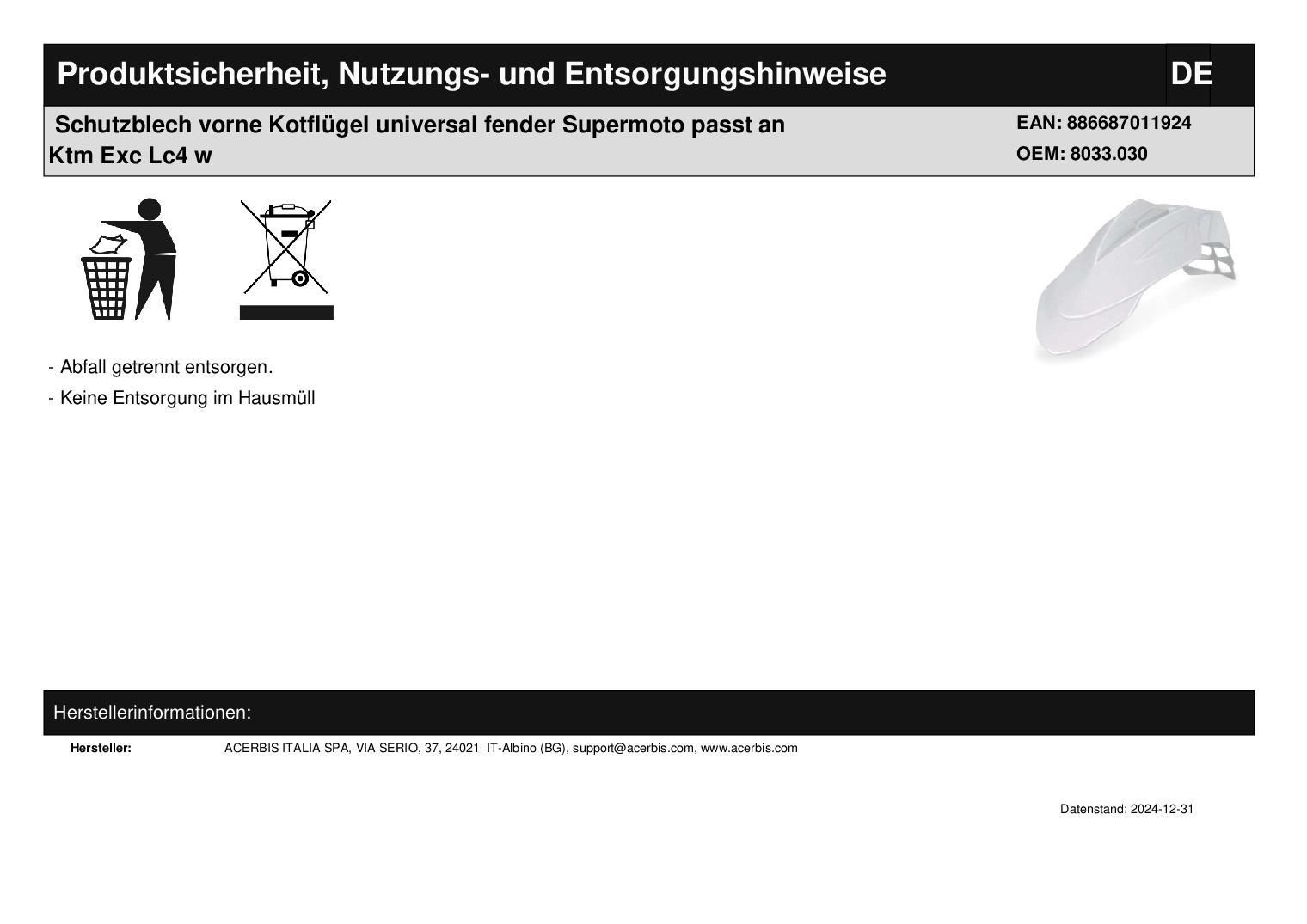 Acerbis Schutzblech vorne Kotflügel universal fender Supermoto passt an Ktm Exc Lc4 w