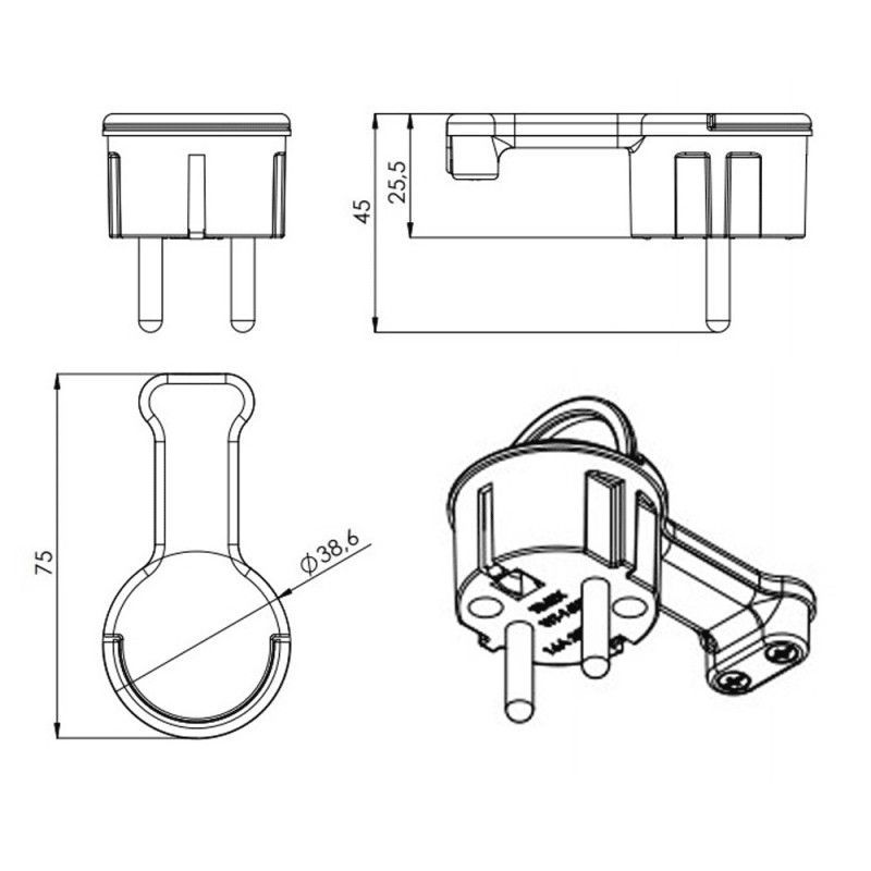 Geeignet ist der Schutzkontakt-Flachstecker für Leitungsquerschnitte von 0,75mm² bis 1,5mm² mit einer Spannung von 250 V (50 60Hz) und einer Nennspannung von 16A. Ausgestattet ist unser Schutzkontaktstecker inkl. 2 Kabelzugentlastungen für 3-adrige Kabel. Das Gehäuse ist aus Kunststoff, die Klemmen