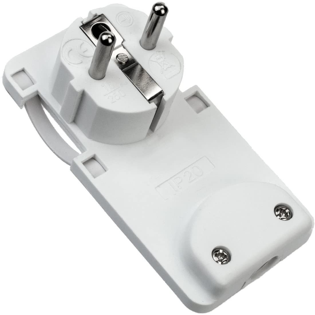 Schutzkontakt Flachstecker weiß (2P + PE) extraflacher Netzstecker aus Kunststoff