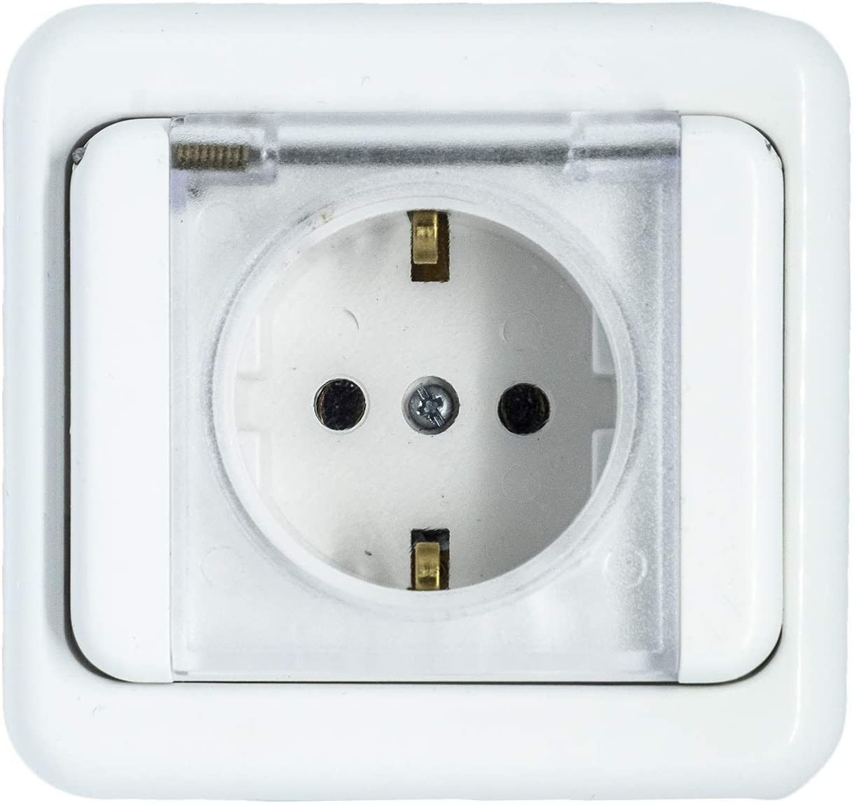 Schutzkontakt Steckdose IP44 Inklusive weiß mit Klappdeckel Transperant 250V 16A