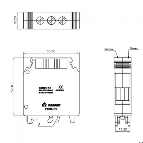 Schutzleiter-Reihenklemme 35mm2 gelb-grün PE Klemme Erdungsklemme 3442
