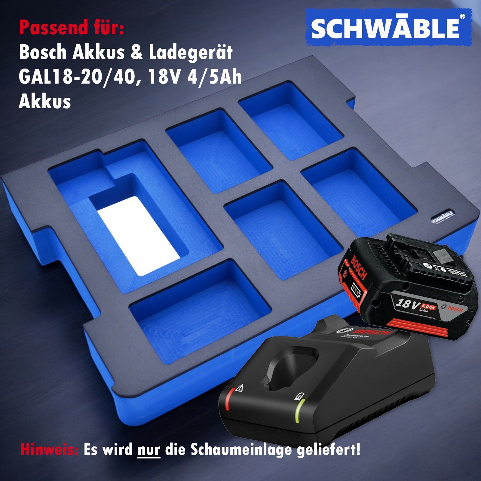SCHWÄBLE® Schaumeinlage Schaumstoffeinlage Bosch Akku-Starter-Set GAL18-40 4-5Ah
