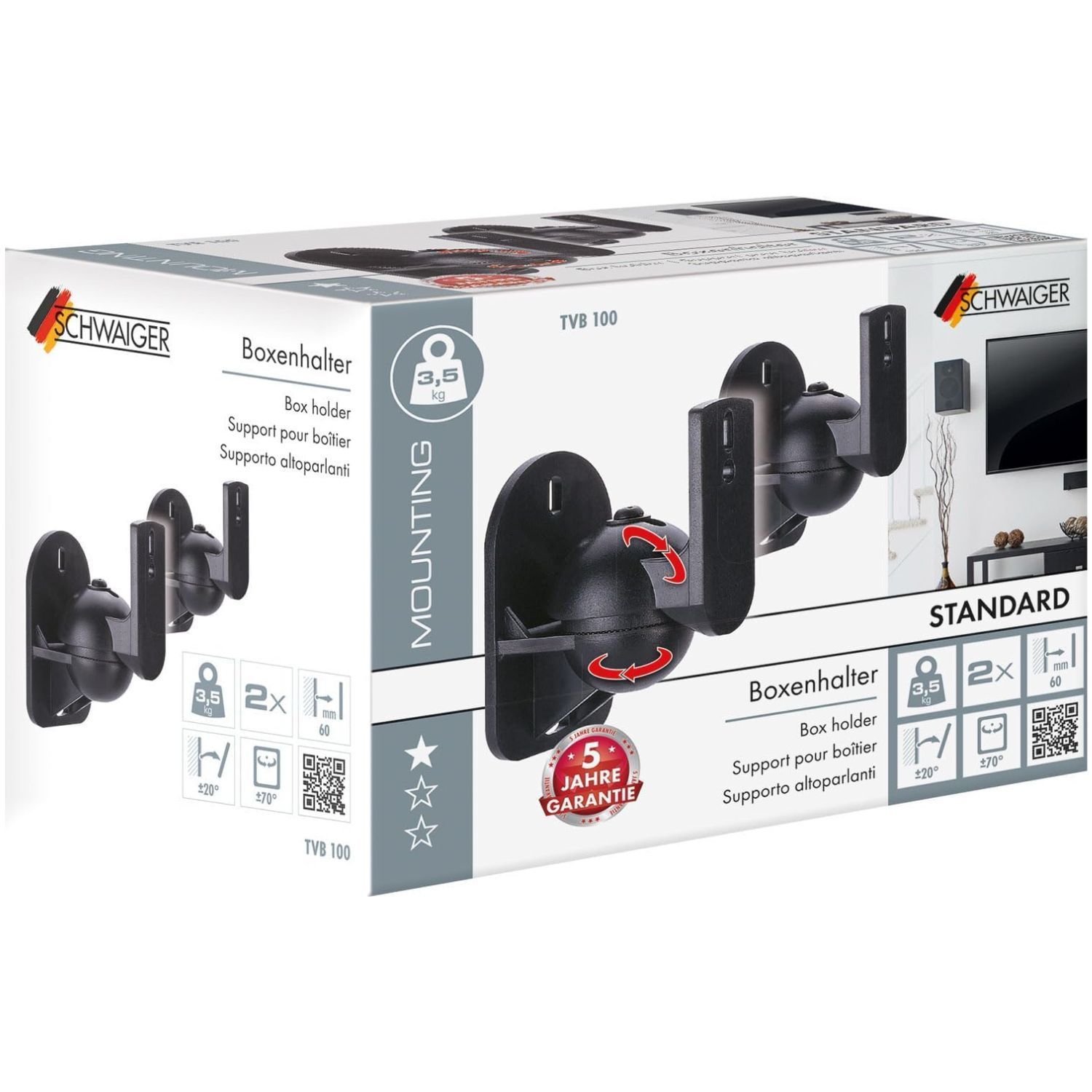 Schwaiger Schwaiger 2x Lautsprecher-Halterung Paar Wand-Halterung Boxen-Halter Wand-Halter