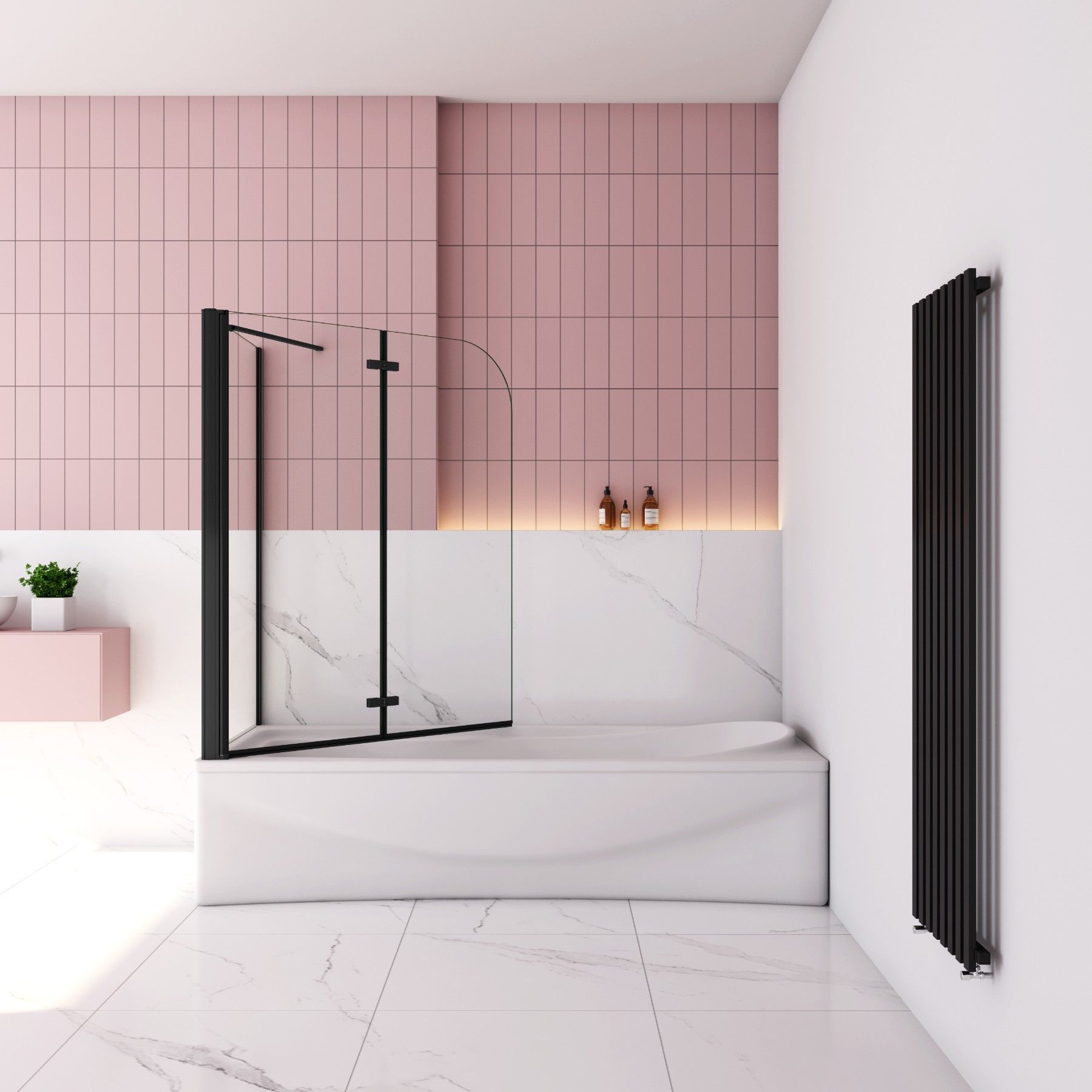 Schwarz Badewanneaufsatz 110cm Faltwand mit 80cm Seitewand 6mm glas für Badewanne