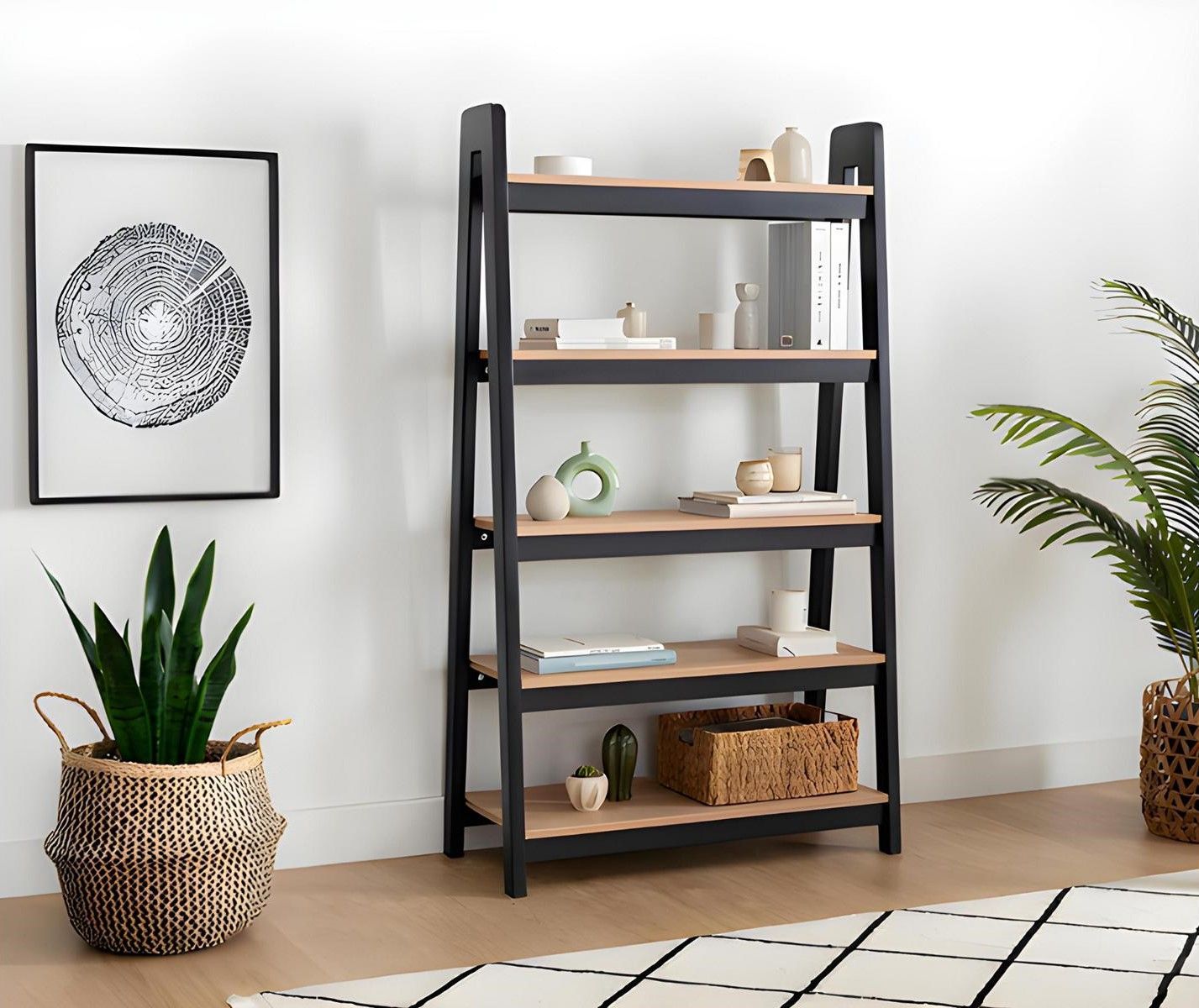 Schwarz-Beiger Bücherregal Wohnzimmer Aktenregale Holz Ablagen Möbel