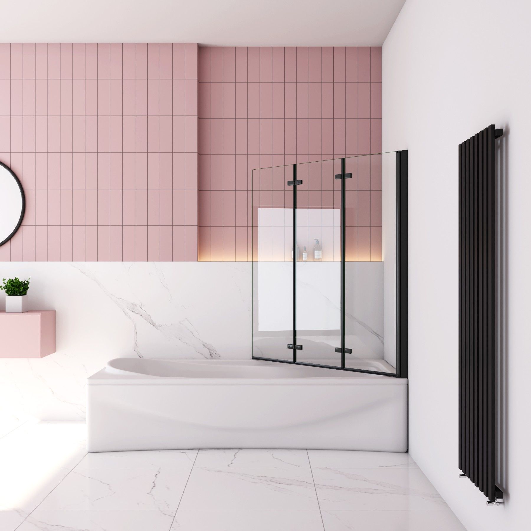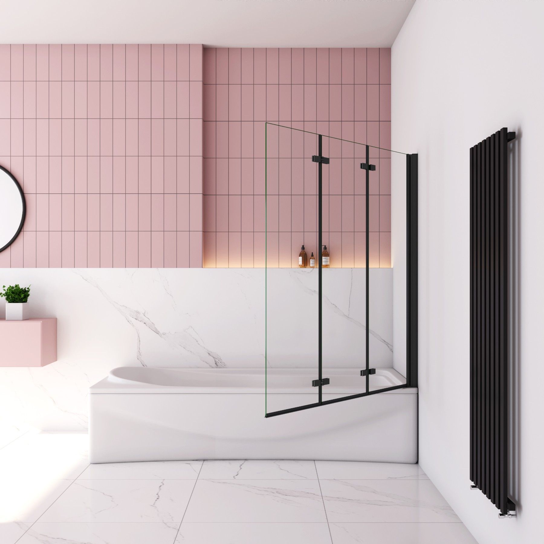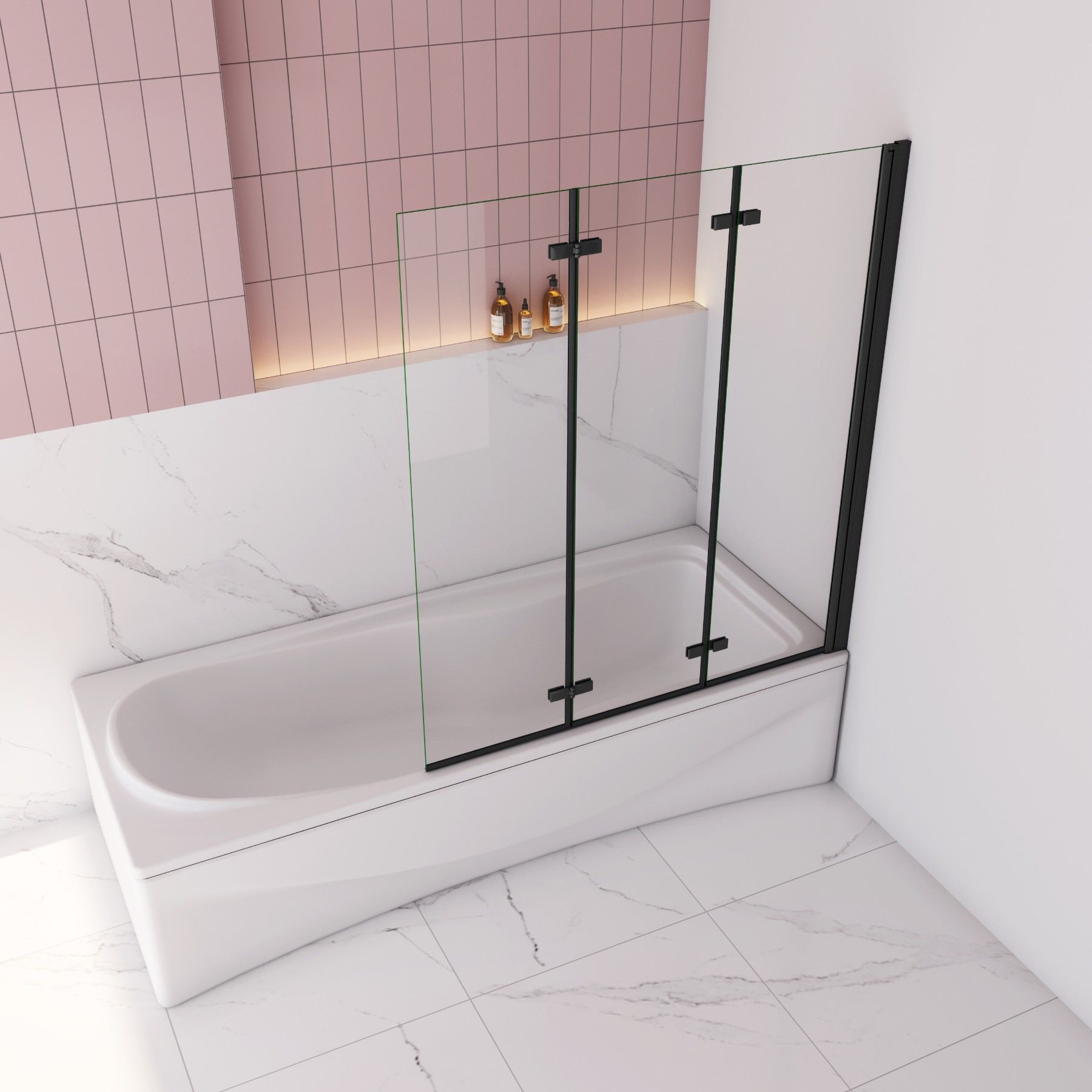 Schwarz Faltwand 180° Drehbar 130x140cm Badewanneaufsatz für Badewanne 6mm ESG
