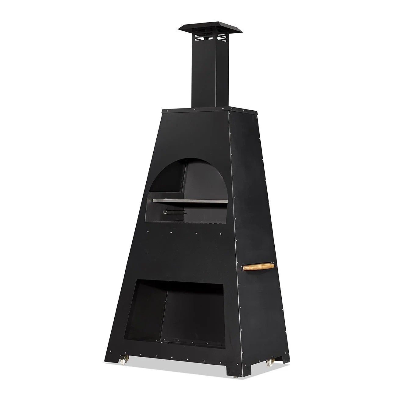 Schwarz Holz Grillkamin im eleganten Design für den Garten