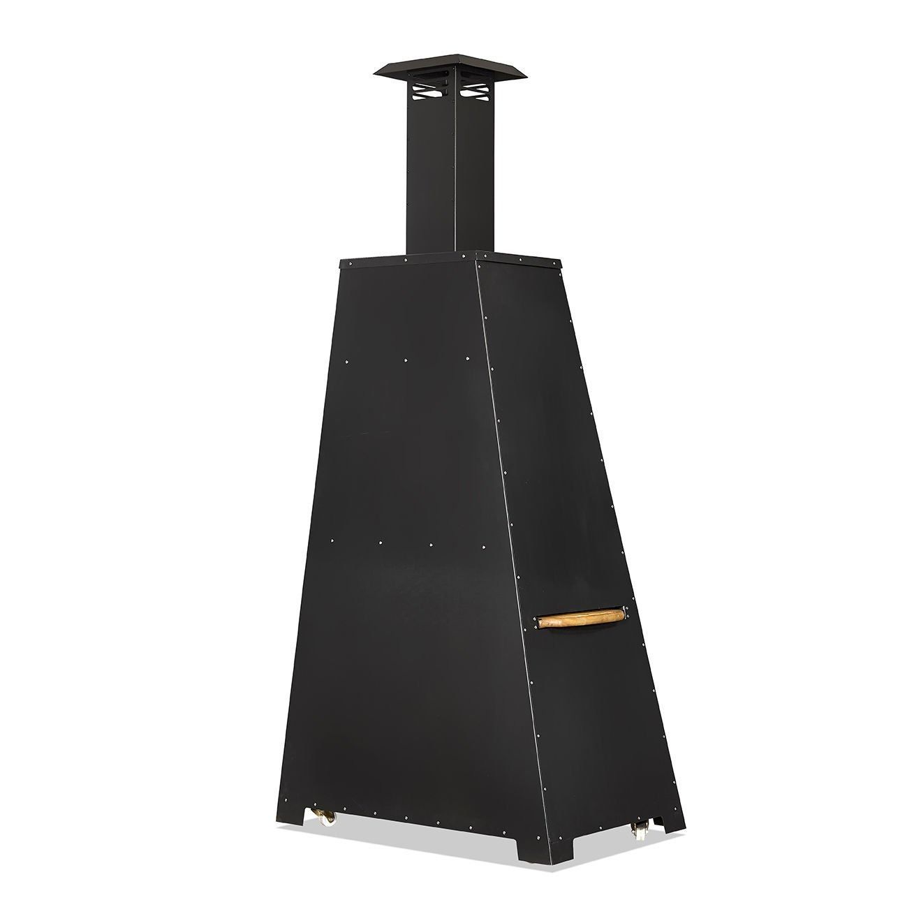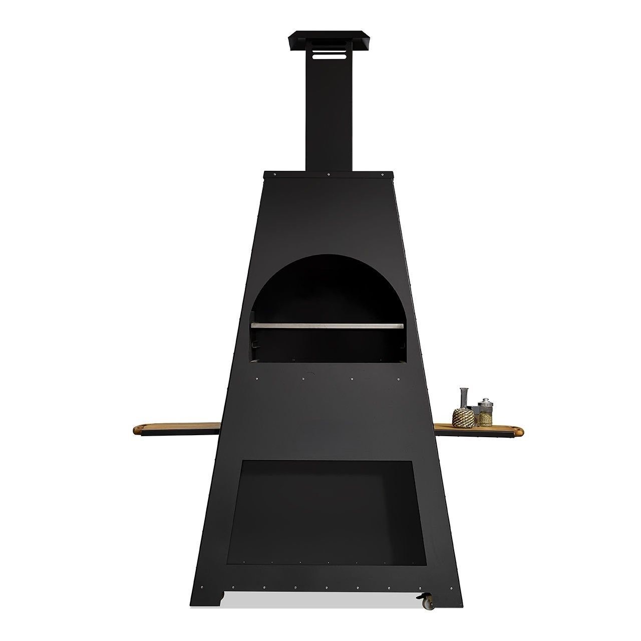 Schwarz Holz Grillkamin im eleganten Design für den Garten
