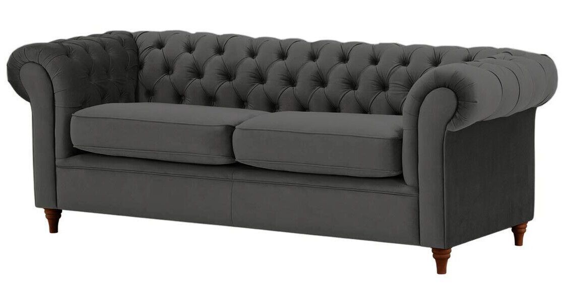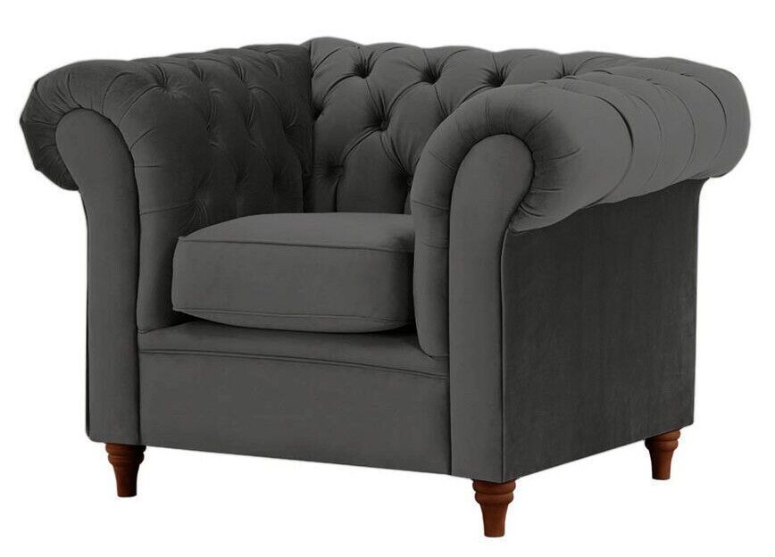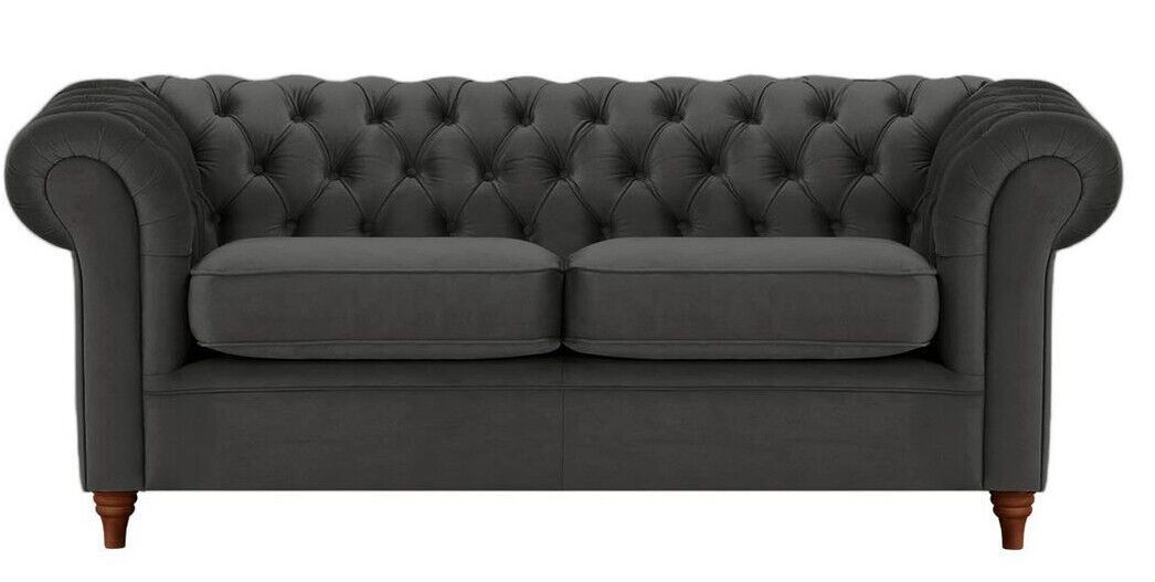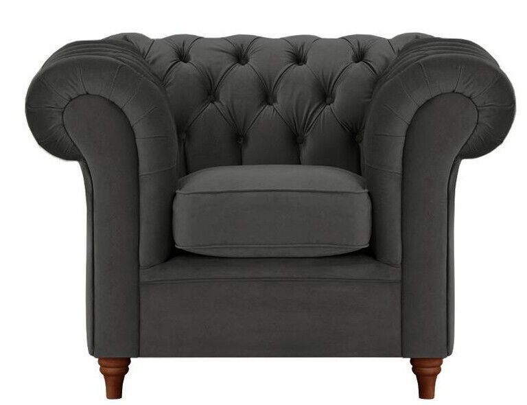 Schwarz SAMT SET 3-1-1 Chesterfield 3 + 2 + 1 SITZER SOFA SESSEL Polstergarnitur