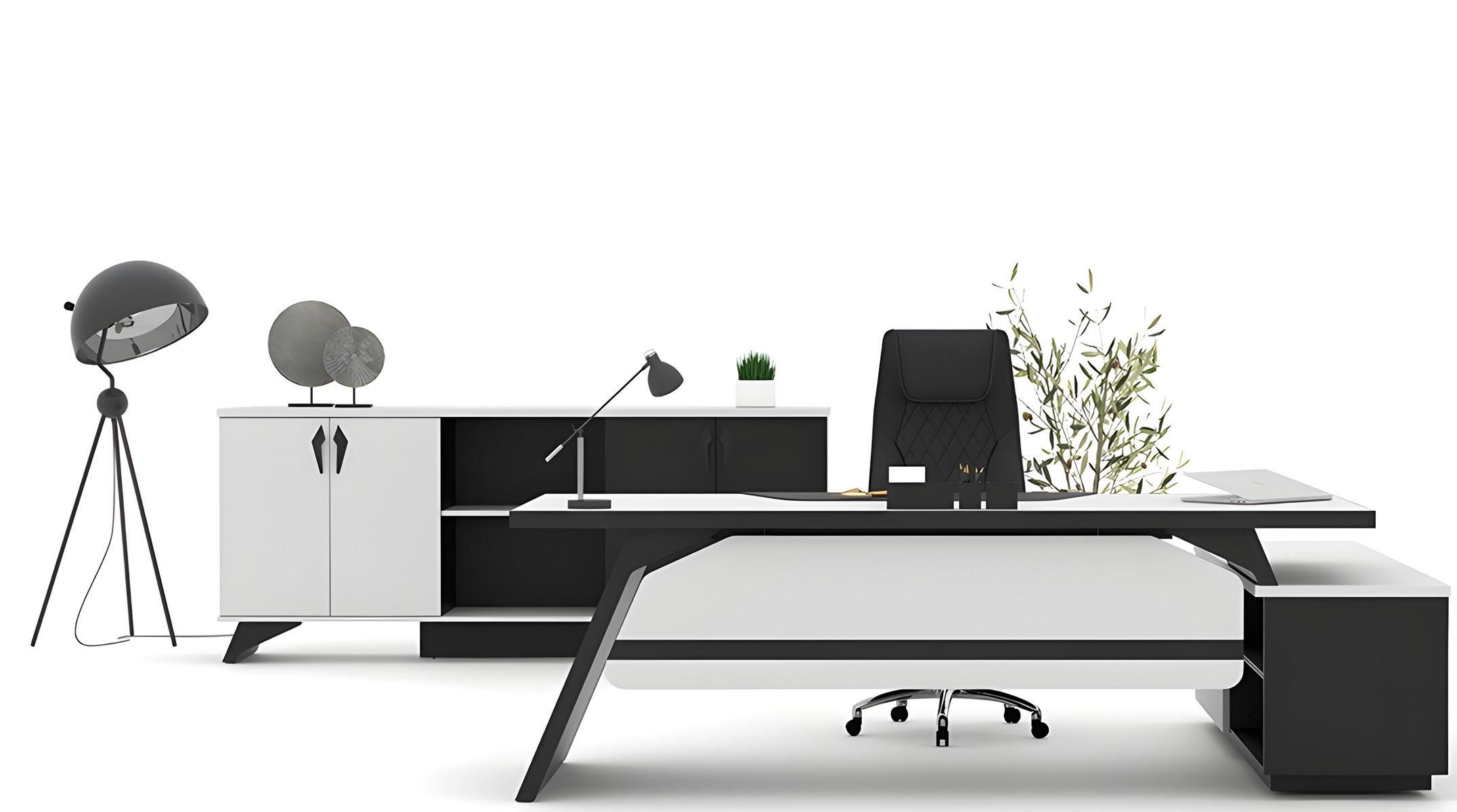 Schwarz-Weiße Büromöbel Exklusiver Schreibtisch Aktenschrank Tisch