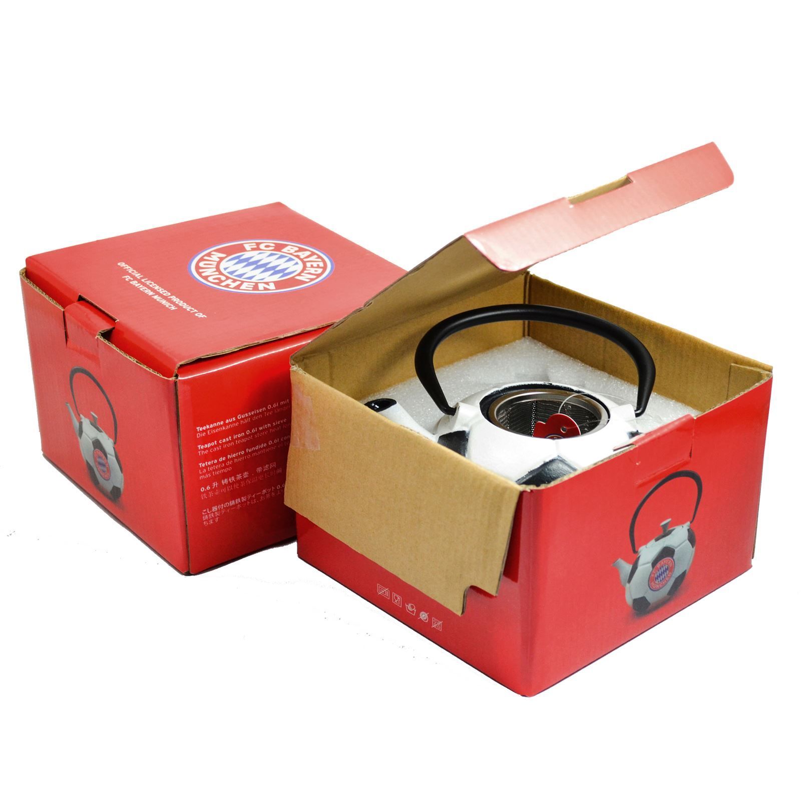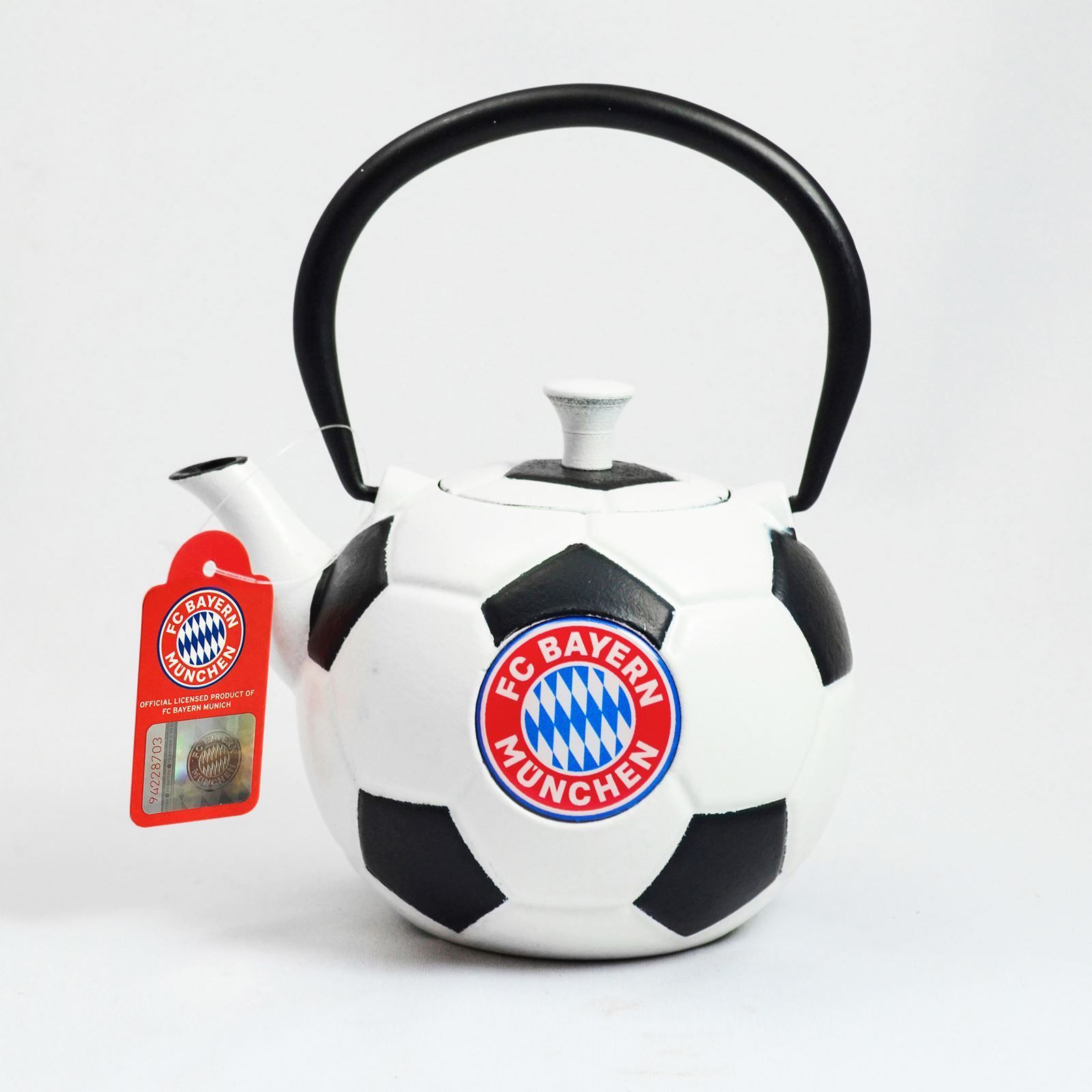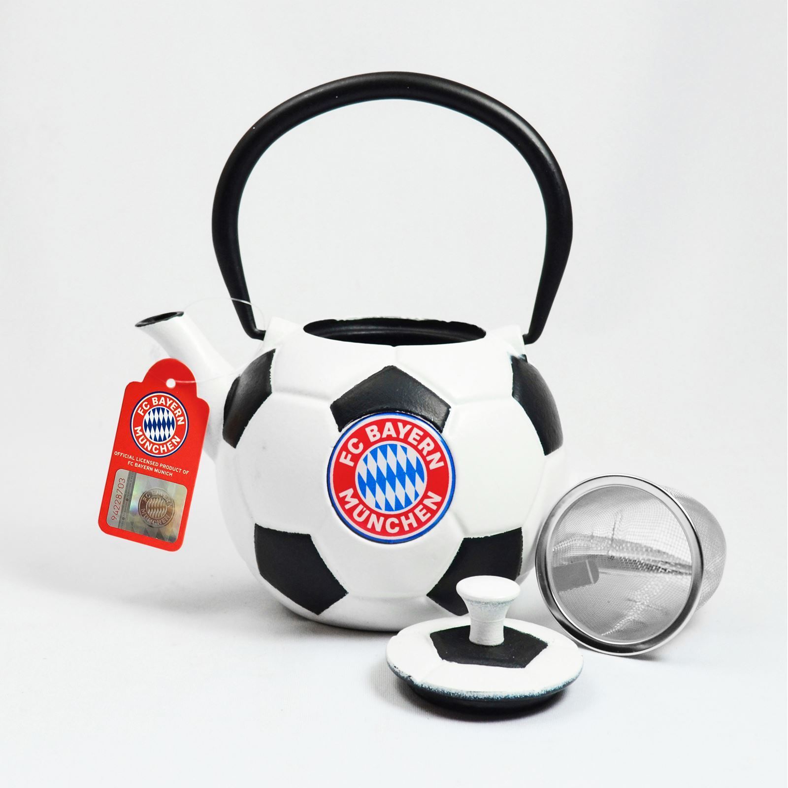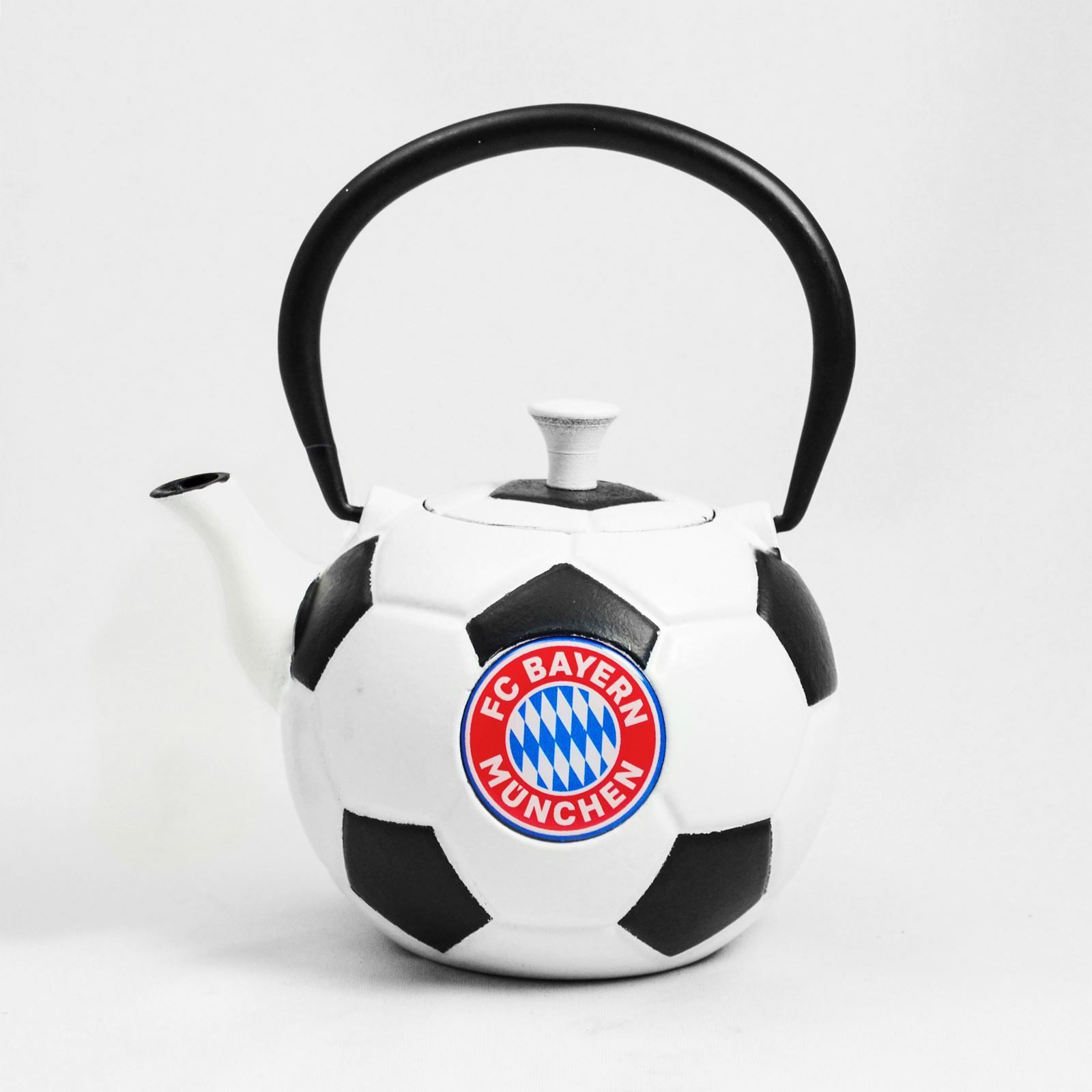 schwarz weisse gusseiserne FC Bayern Teekanne Fussball 0.6 Liter