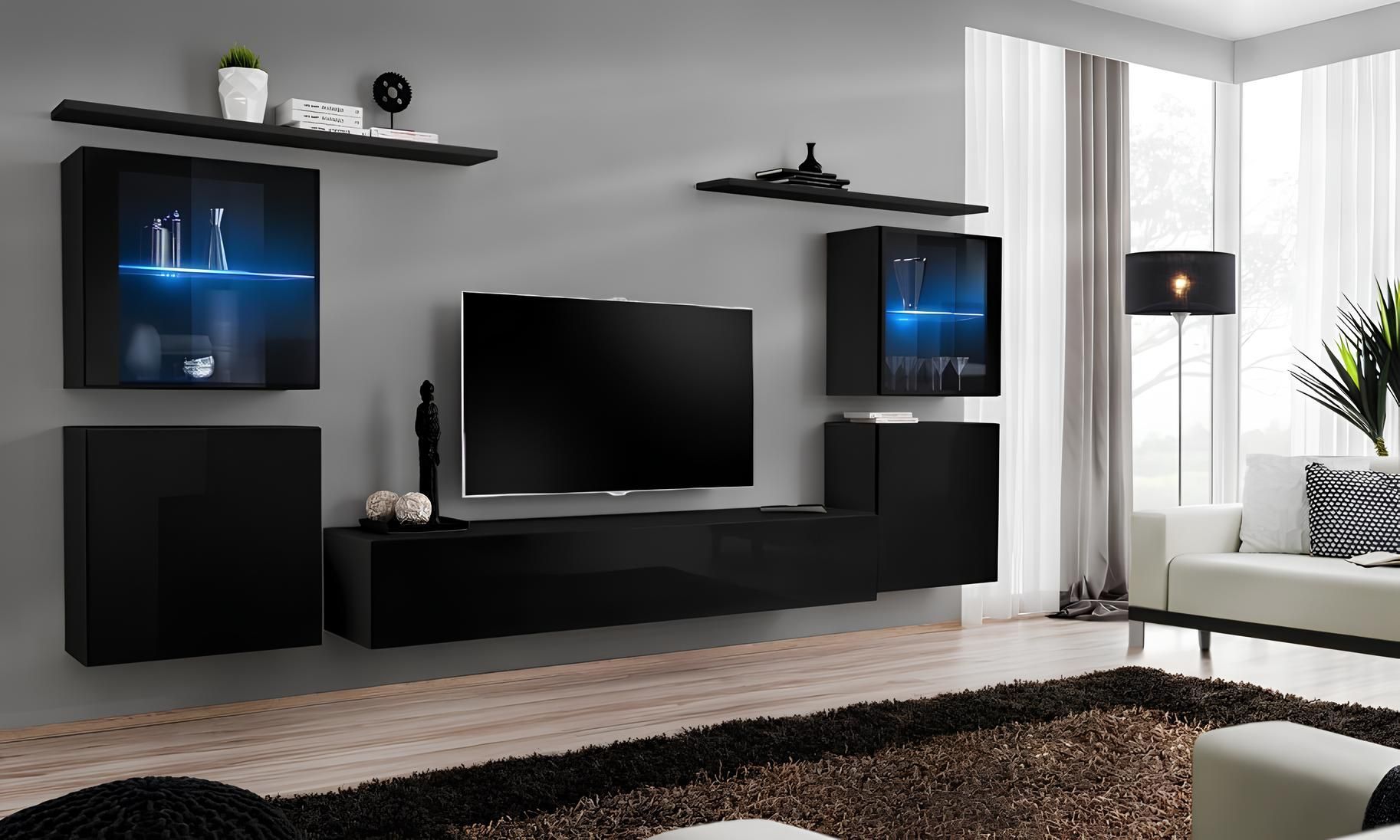 Schwarz Wohnwand Wohnzimmermöbel Luxus Wand Schrank Komplett Designer Neu