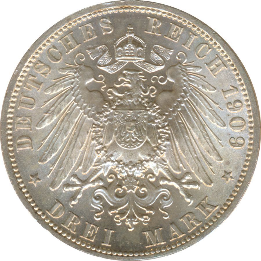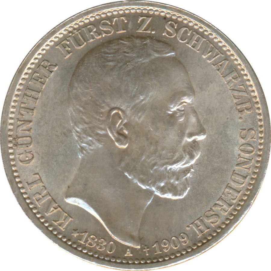 Schwarzburg-Sondershausen 3 Mark 1909 Auf den Tod von Karl Günther Silber*