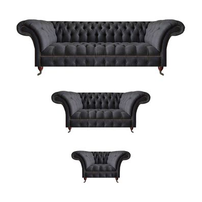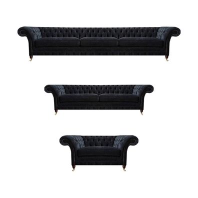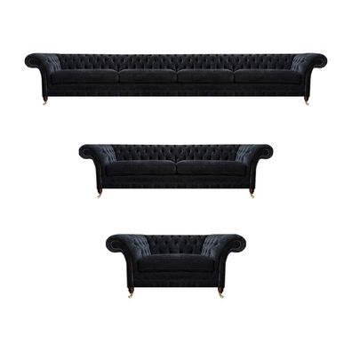 Chesterfield Komplett Schwarze Wohnzimmer Polstercouch Designer Sitzmöbel
