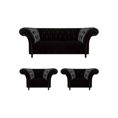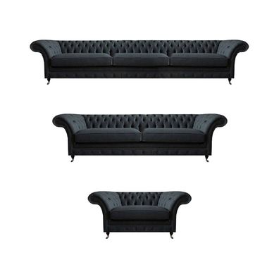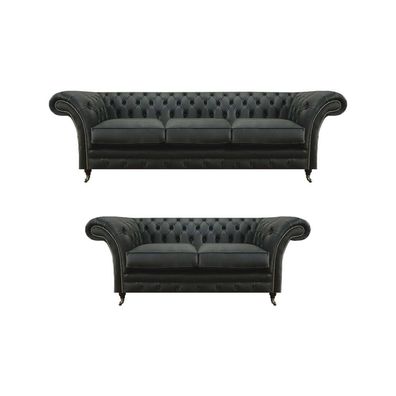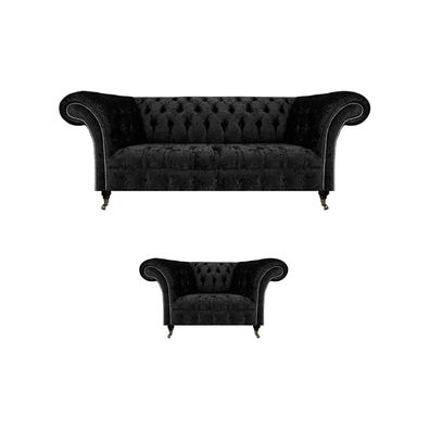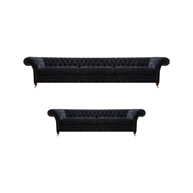 Schwarze Chesterfield Sofagarnitur Designer Zweisitzer Viersitzer Couch