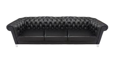 Schwarzes Chesterfield Ledersofa Designer Wohhnzimmer Polster Couch