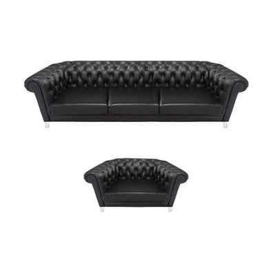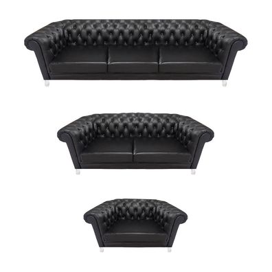 Modern Schwarz Chesterfield Wohnzimmer Dreisitzer mit Zweisitzer Sofas