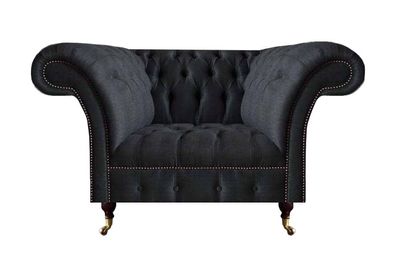 Wohnzimmer Chesterfield Schwarzer Einsitzer Textilsessel Edler Sessel