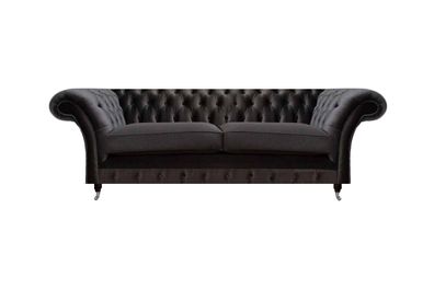 Schwarzer Chesterfield Dreisitzer Luxuriöse Wohnzimmer Edelstahl Couch