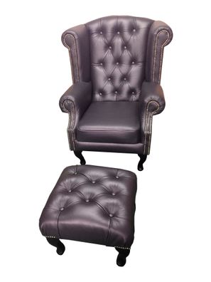 Luxus Ohrensessel und Hocker Chesterfield Sessel Leder Schwarz Modern