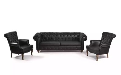 Schwarze Wohnzimmer Chesterfield Garnitur Designer Dreisitzer Sessel