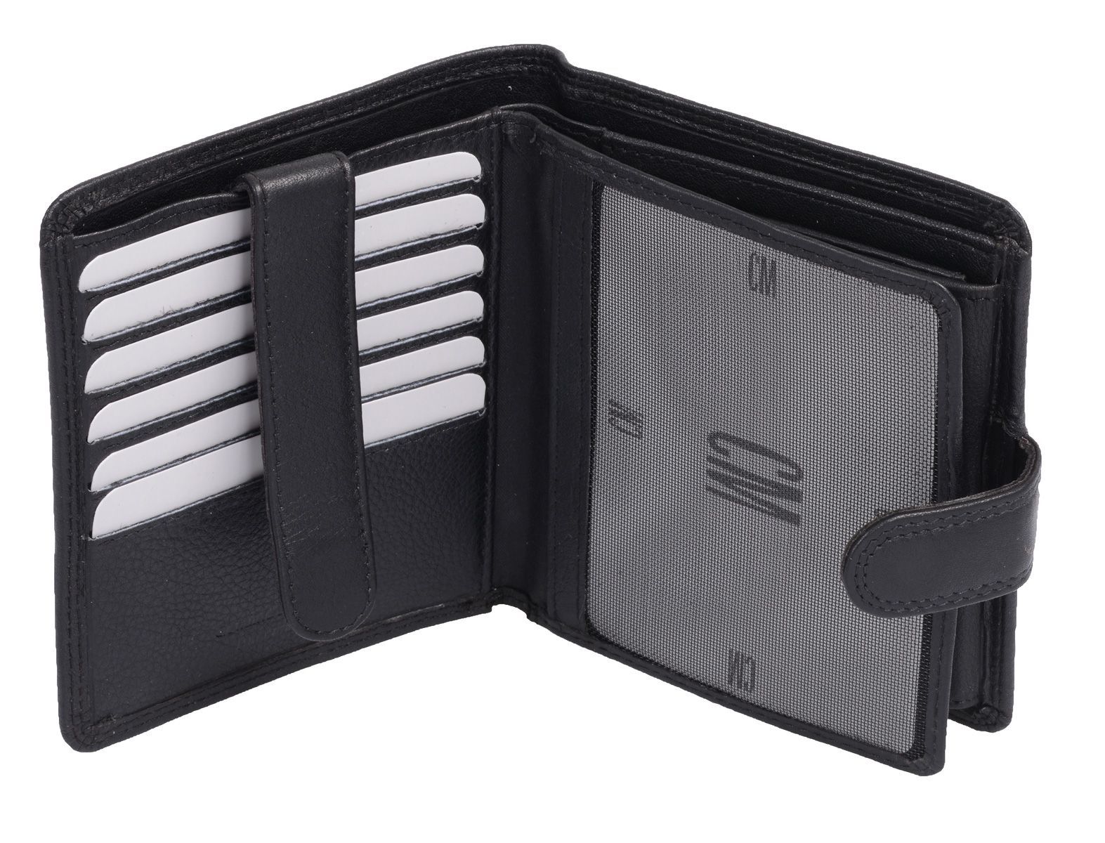 schwarze CM Lederbörse mit Sicherheitsverschluss 12 Karten Kartenfächer