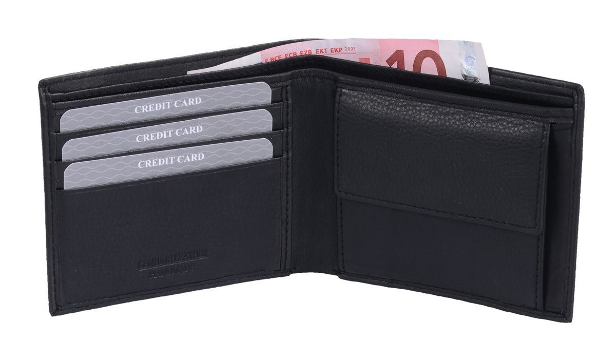 schwarze flache Herrenbörse Leder, querformat ohne Klappe
