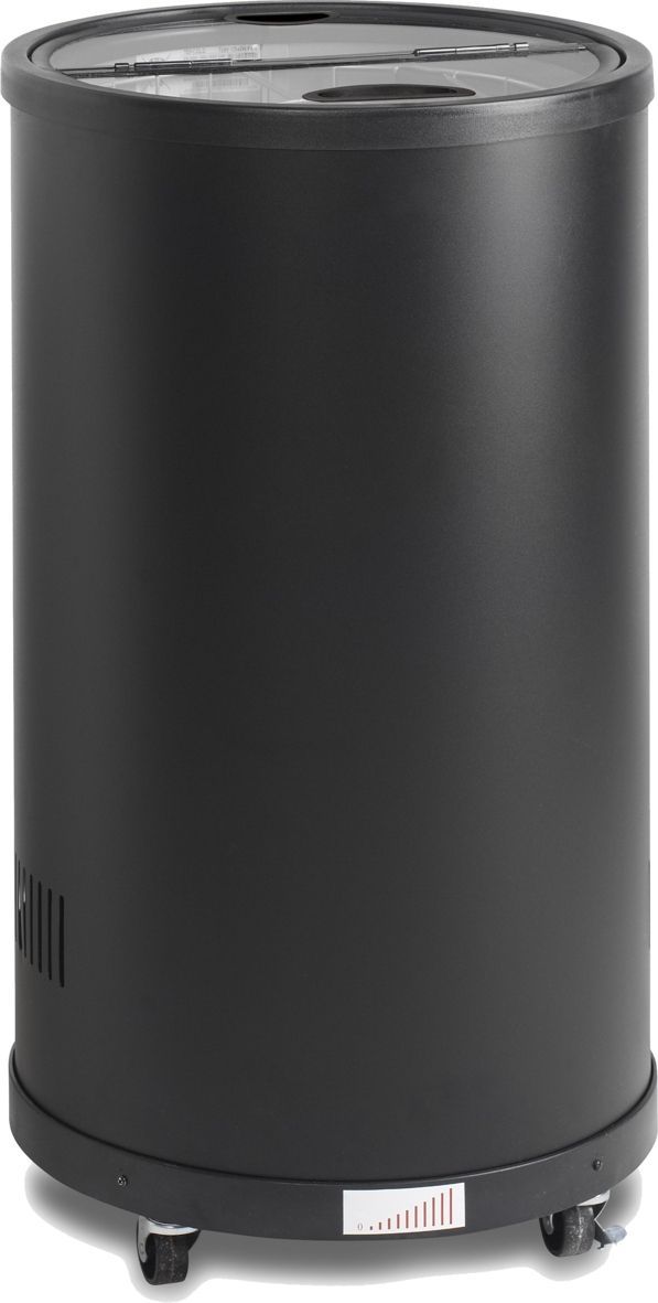 Schwarze Kühltonbne CC 45 IV´s mit Rollen - 53 Liter, mit Plexiglasdeckel