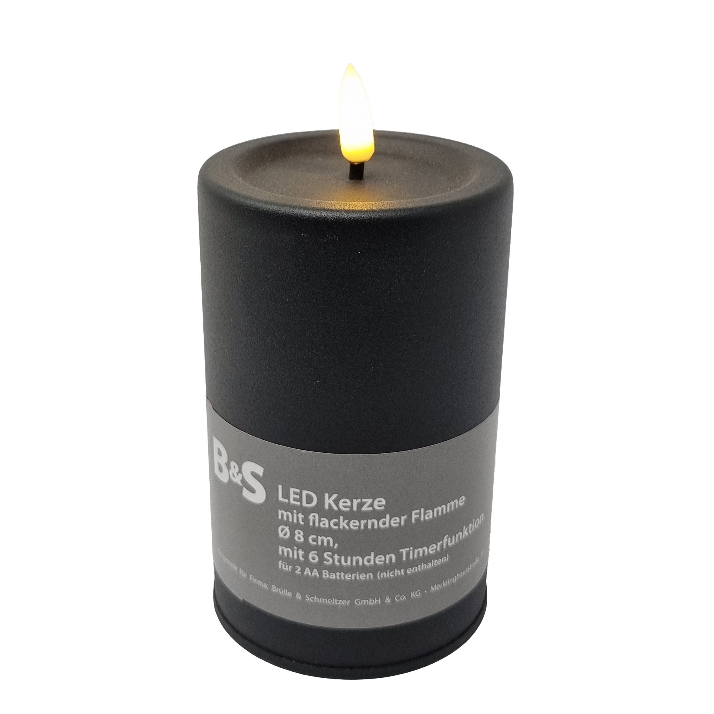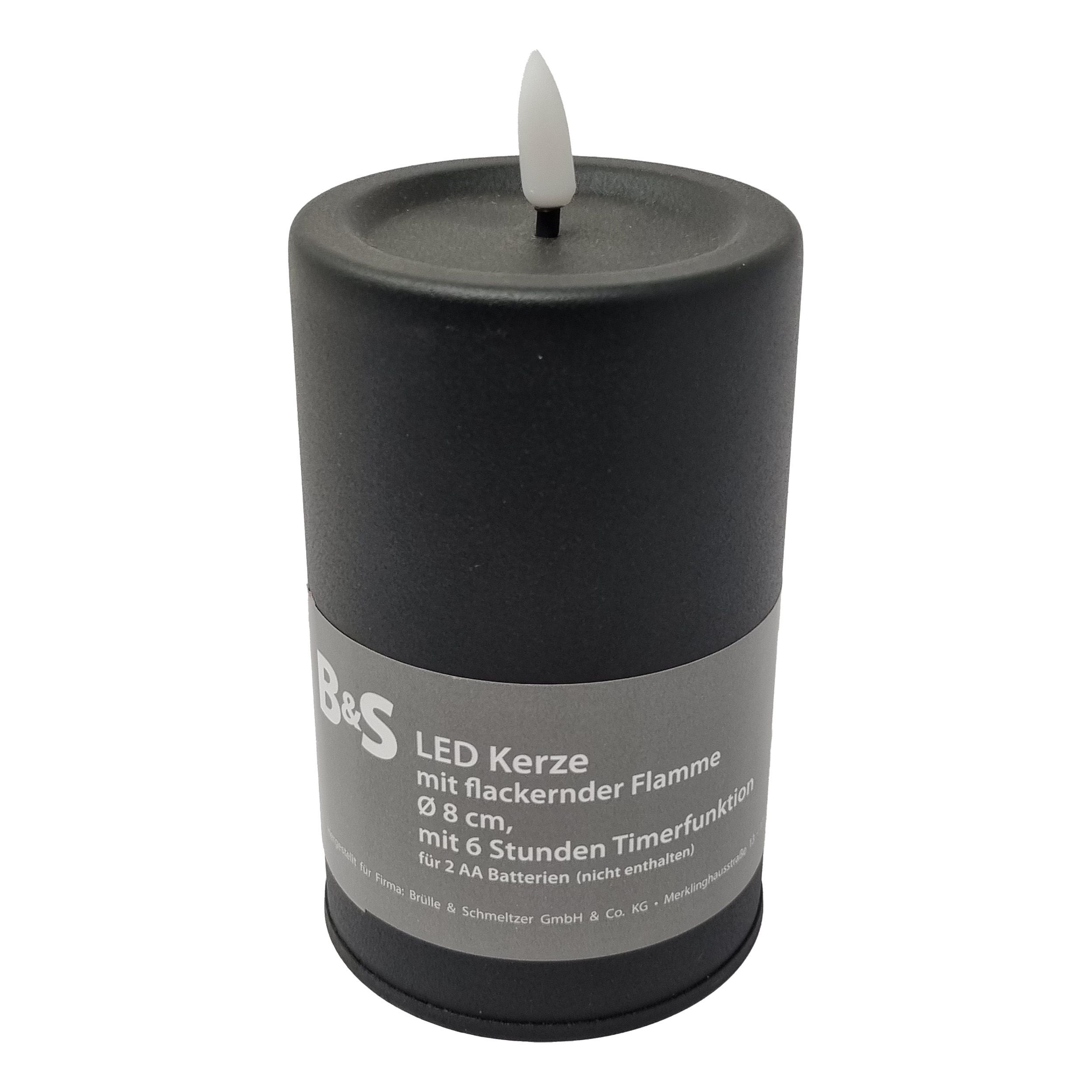 Schwarze LED Kerze Metall Matt Timer H 12,5 x Ø 8 cm