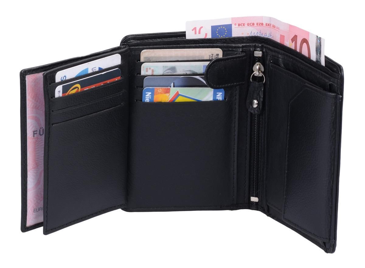 schwarze Leder Herrenbörse viele Kartenfächer Fotofach Reißverschlussfach