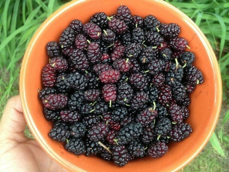 Schwarze Maulbeere Lateinischer Name: Morus nigra Es ist ein sommergrüner Baum und gehört zu der Ordnung der Rosenartigen. Diese Sorte trägt dunkle, schwarze Früchte von feinem Geschmack. Die Früchte können früh von Juni bis Juli geerntet werden. Die gereifte Früchte können roh und zu Marmelade vera