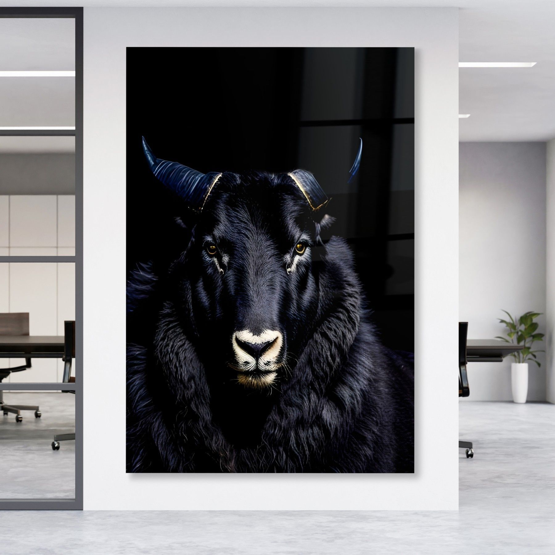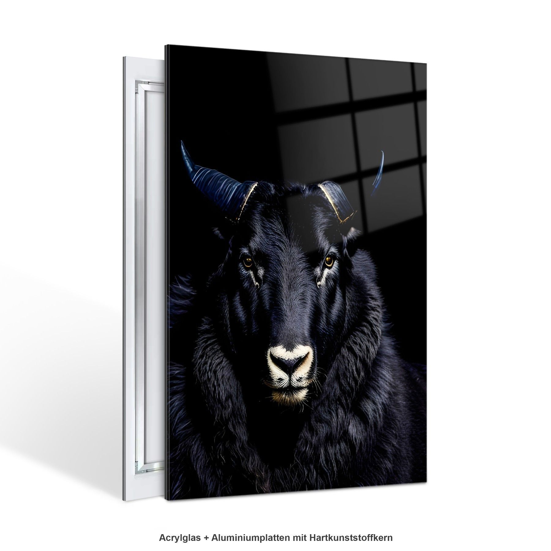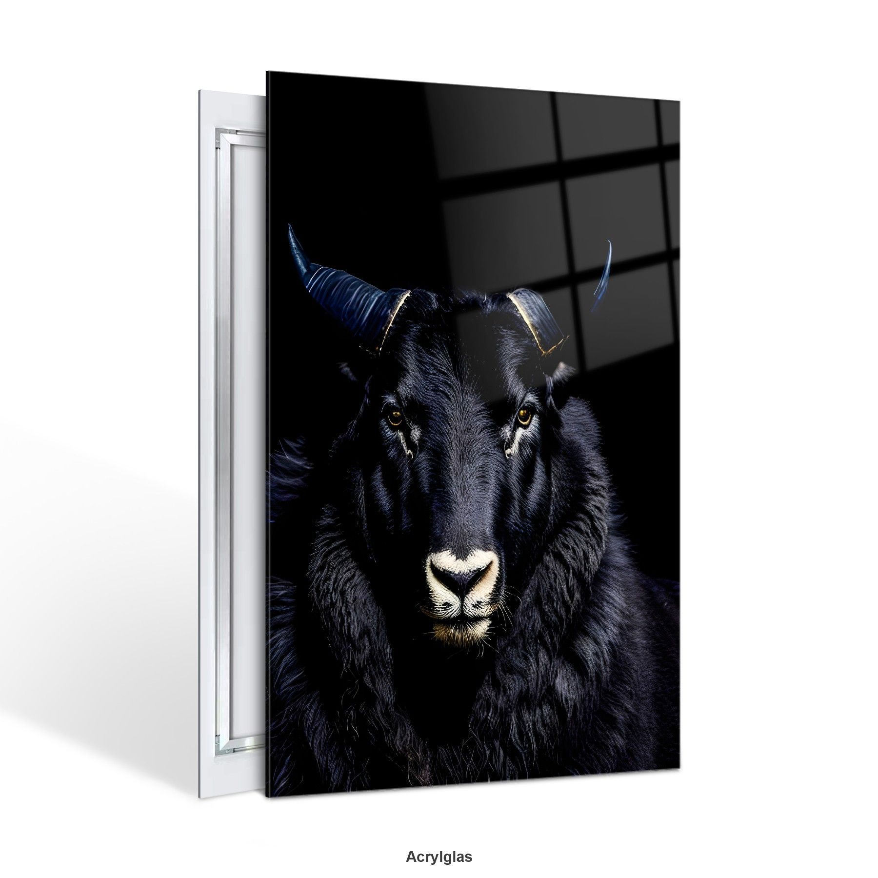Schwarze Ziege Leinwandbild Wandbild Tier Poster, Premium Acrylglas Aluminium