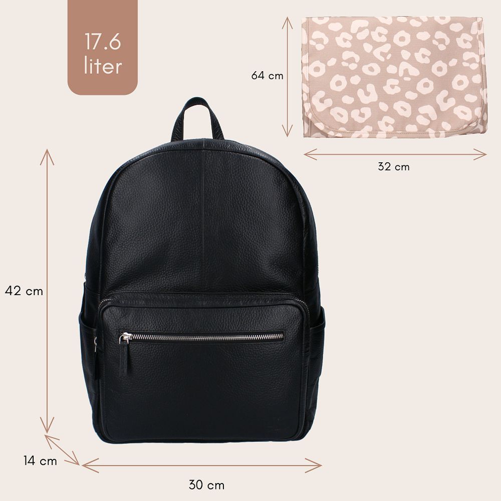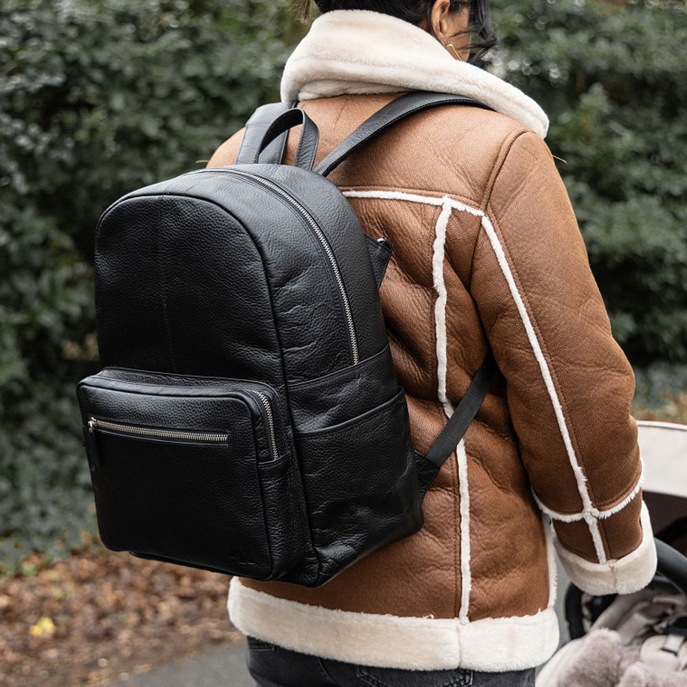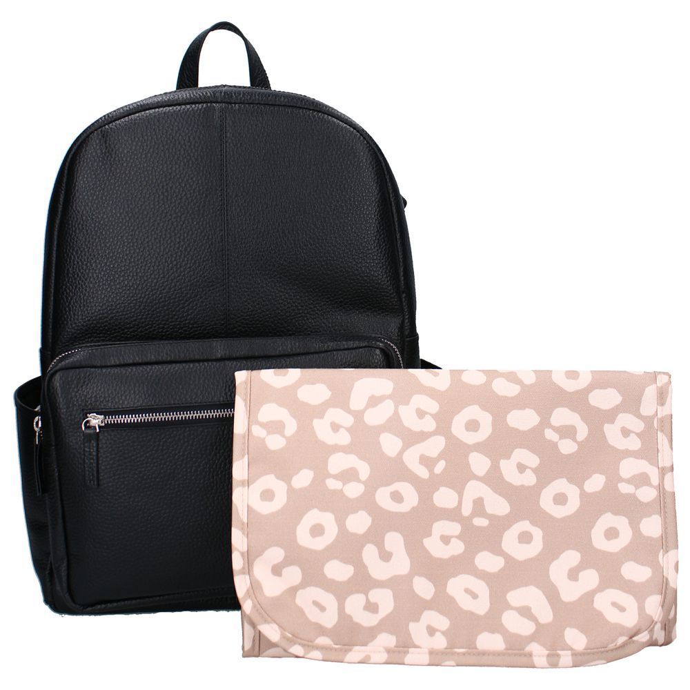 Schwarzer Baby Wickel-Rucksack | Echt Leder | mit Wickelunterlage