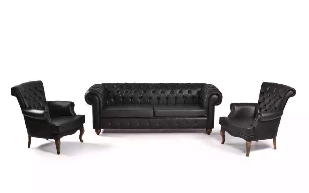 Schwarzer Chesterfield Dreisitzer Büroeinrichtung Couch Luxus Sitzer