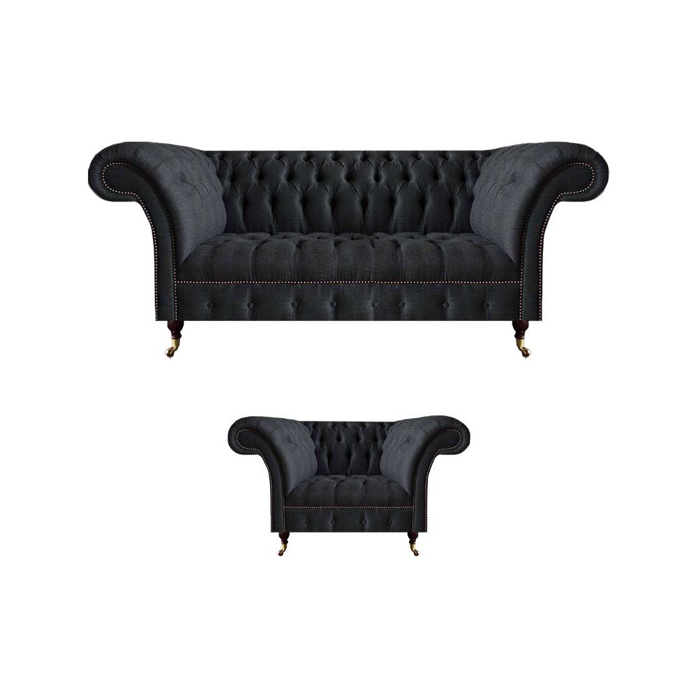 Schwarzer Dreisitzer Wohnzimmer Polstersofa Stoffmöbel Designer Sessel