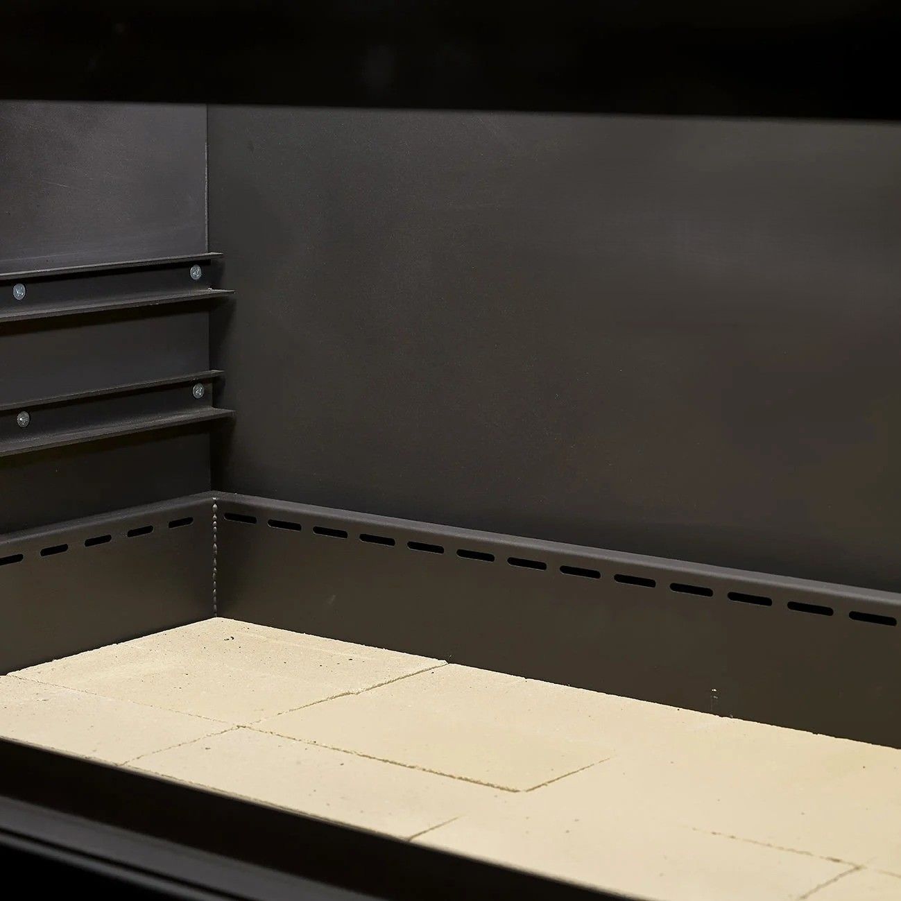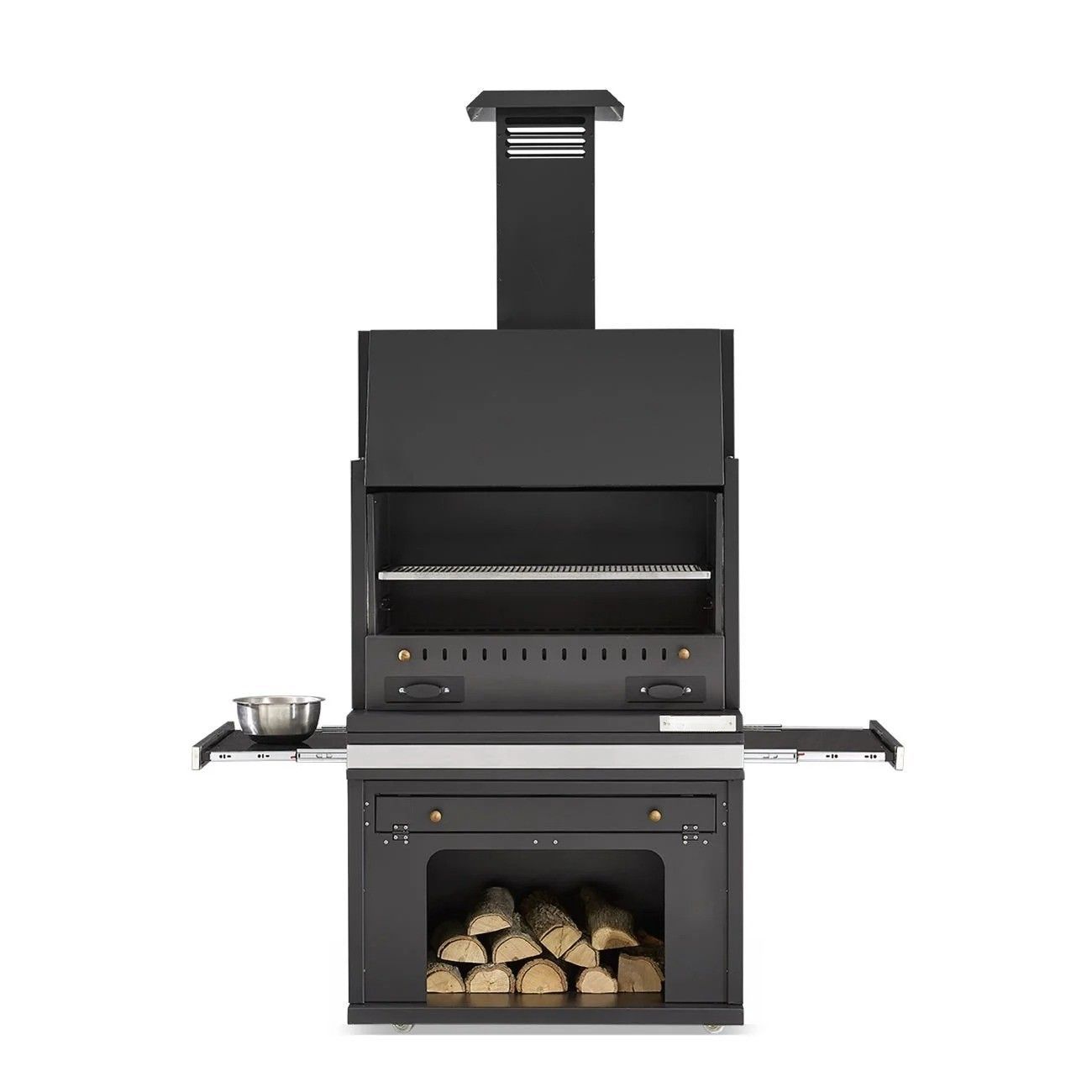 Schwarzer Edelstahl Grillkamin im modernen Design für Garten