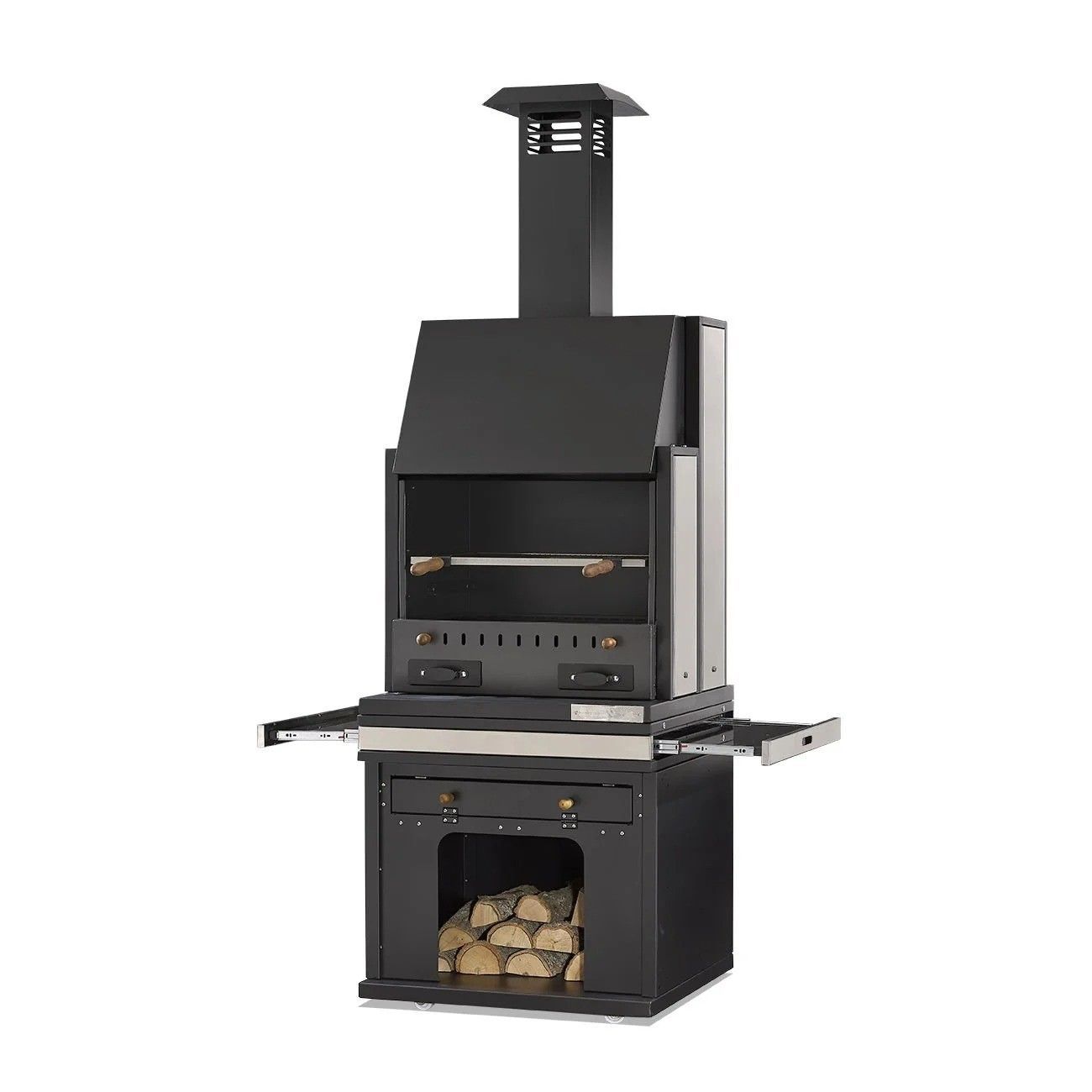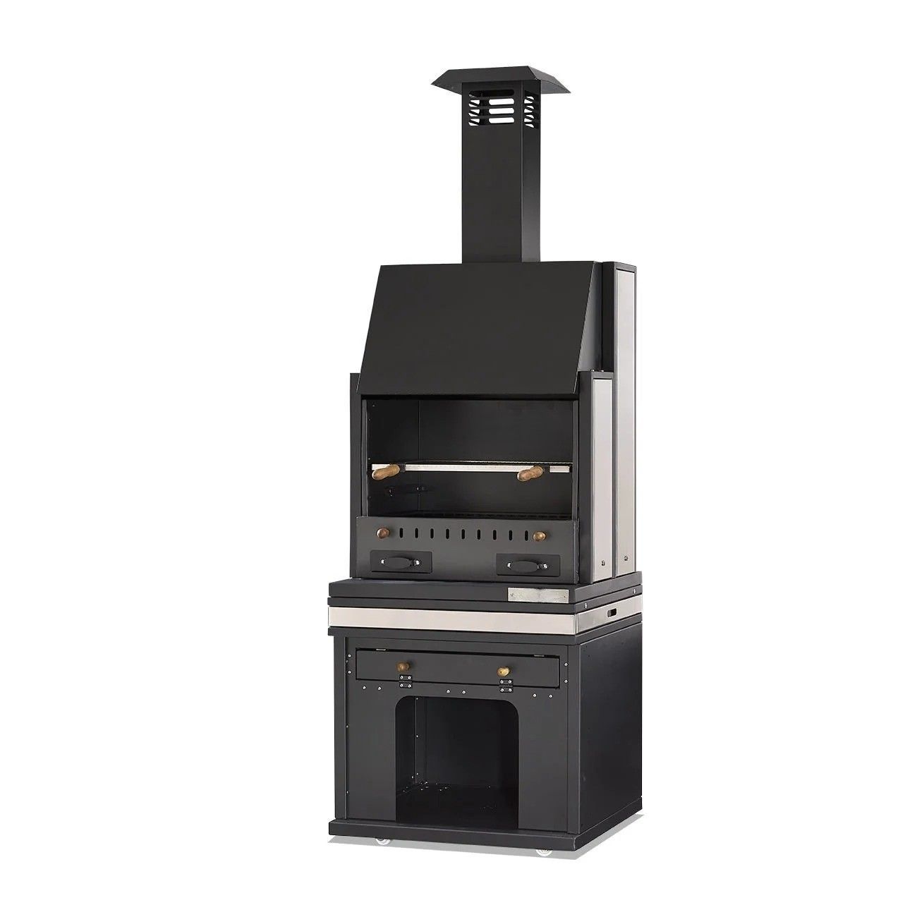Schwarzer Edelstahl Grillkamin modern für Garten und Terrasse