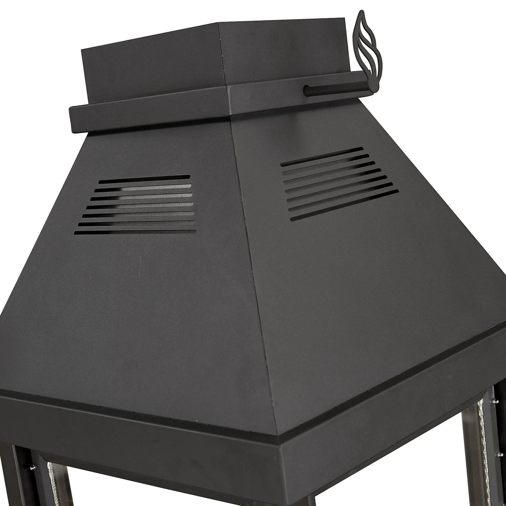 Schwarzer Edelstahl-Holz Kamin modern stilvoll
