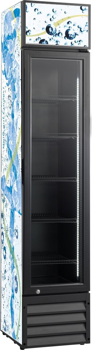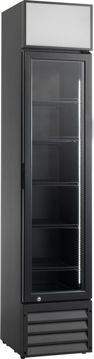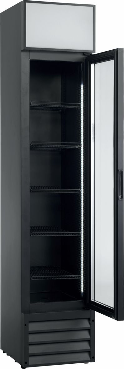 Schwarzer Getränkekühlschrank mit Werbetafel - schwarz, schmale Ausführung, 160 Liter