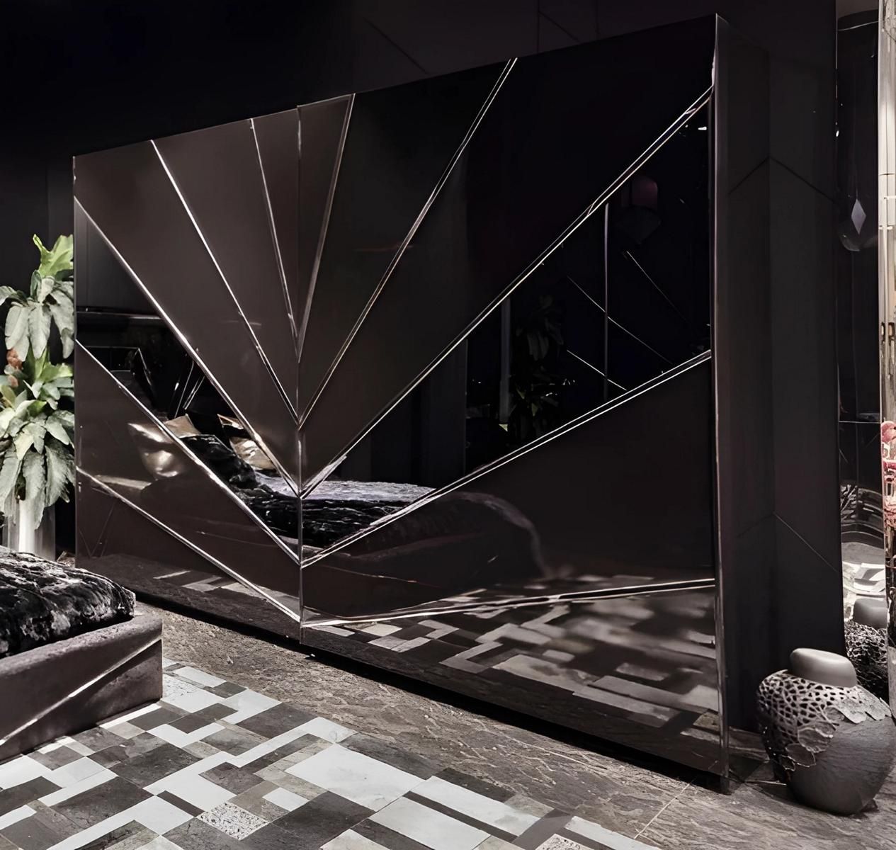 Schwarzer Kleiderschrank Designer Spiegelschrank Schlafzimmer Möbel