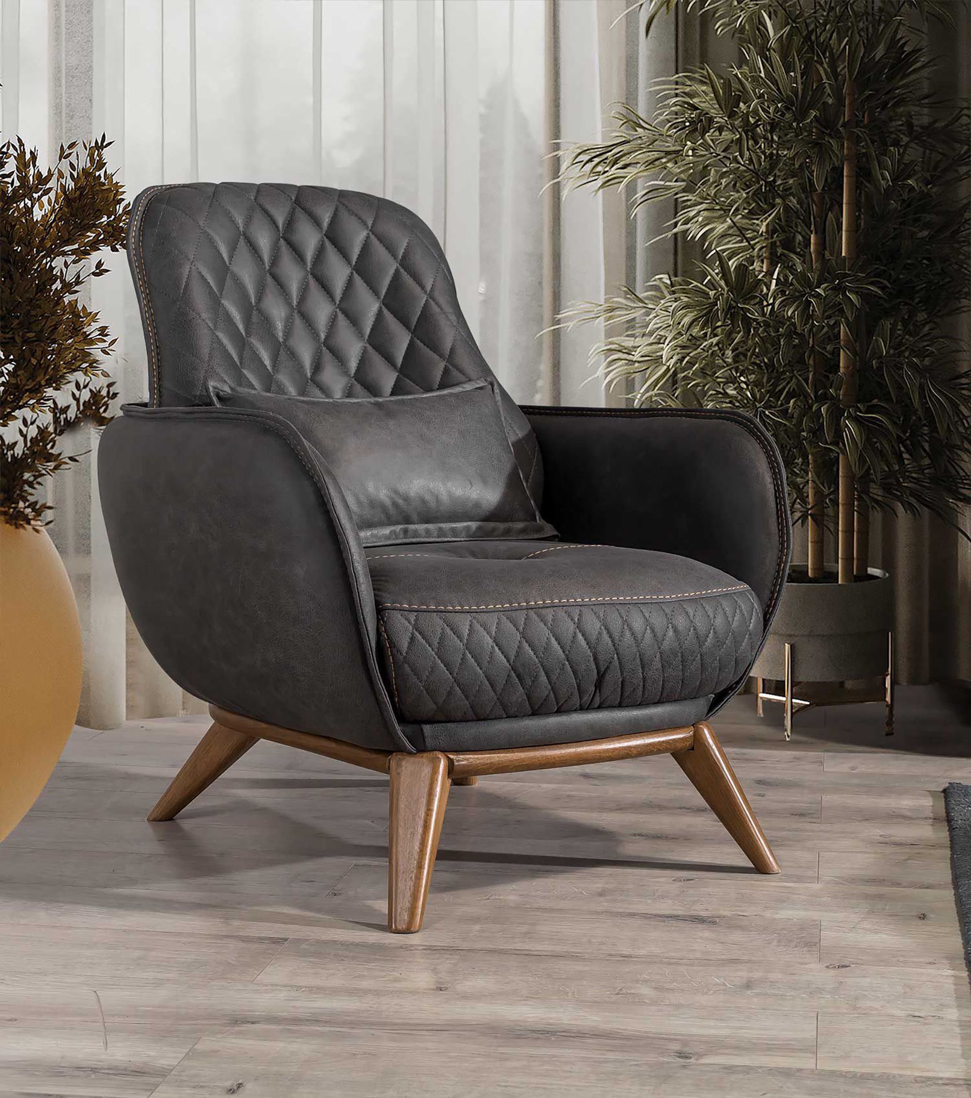 Schwarzer Ledersessel Stilvolle Polstersessel Wohnzimmer Sitzmöbel