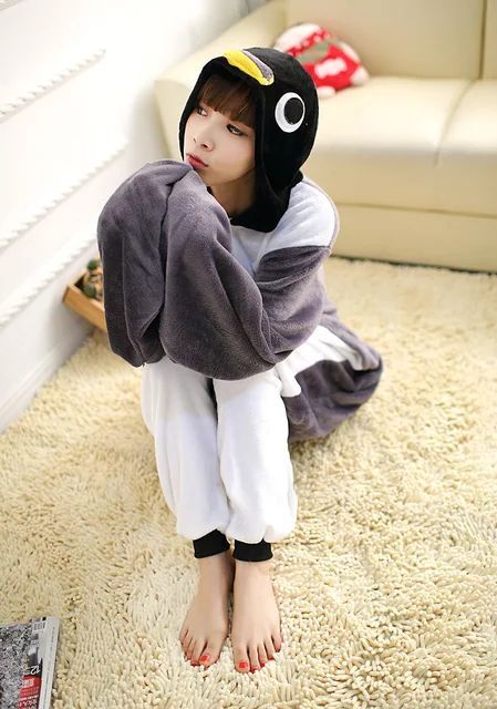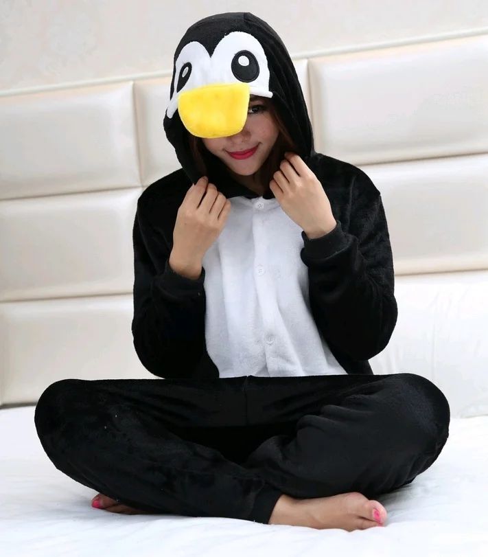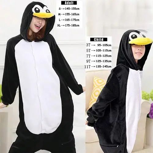 Schwarzer Pinguin Onesie Erwachsene Kinder Tier Cosplay Pyjamas Plusch Weihnachten