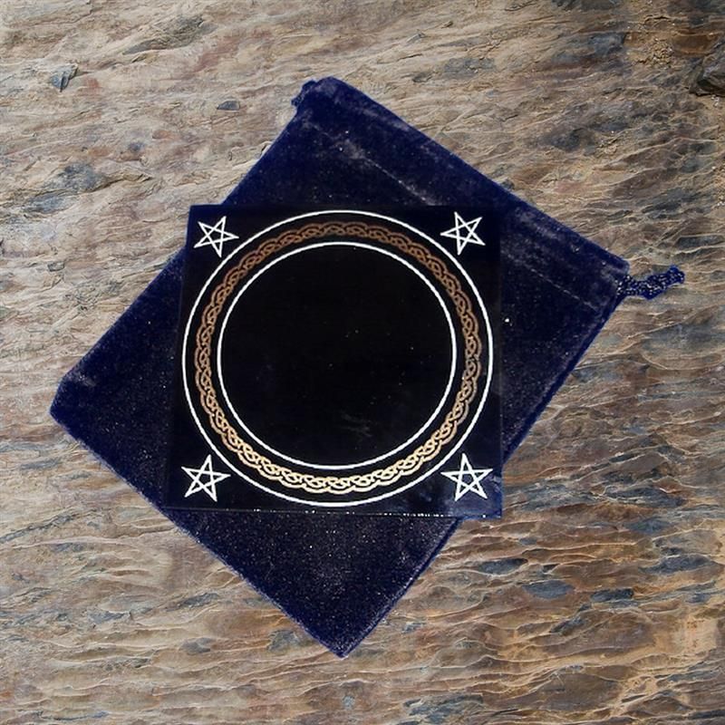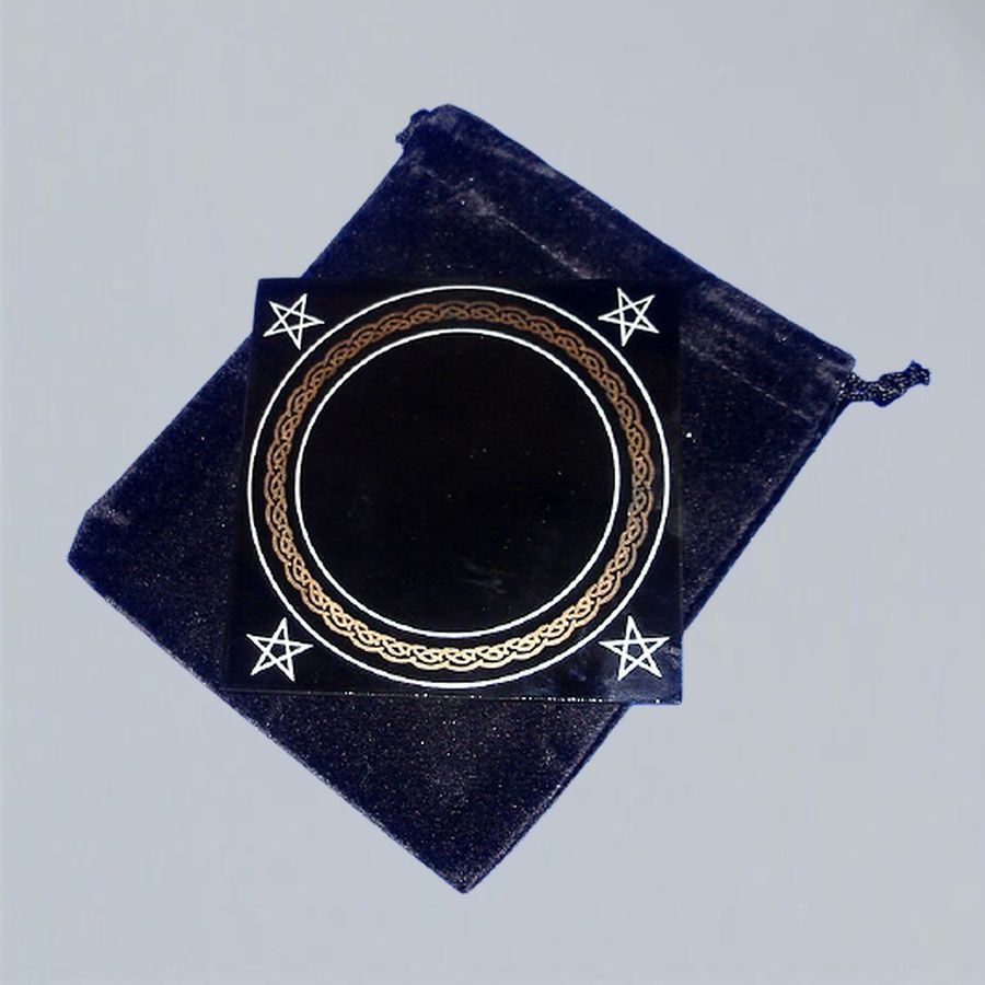 Schwarzer Spiegel Pentagramm im Beutel klein 10 x 10 cm Wahrsagen