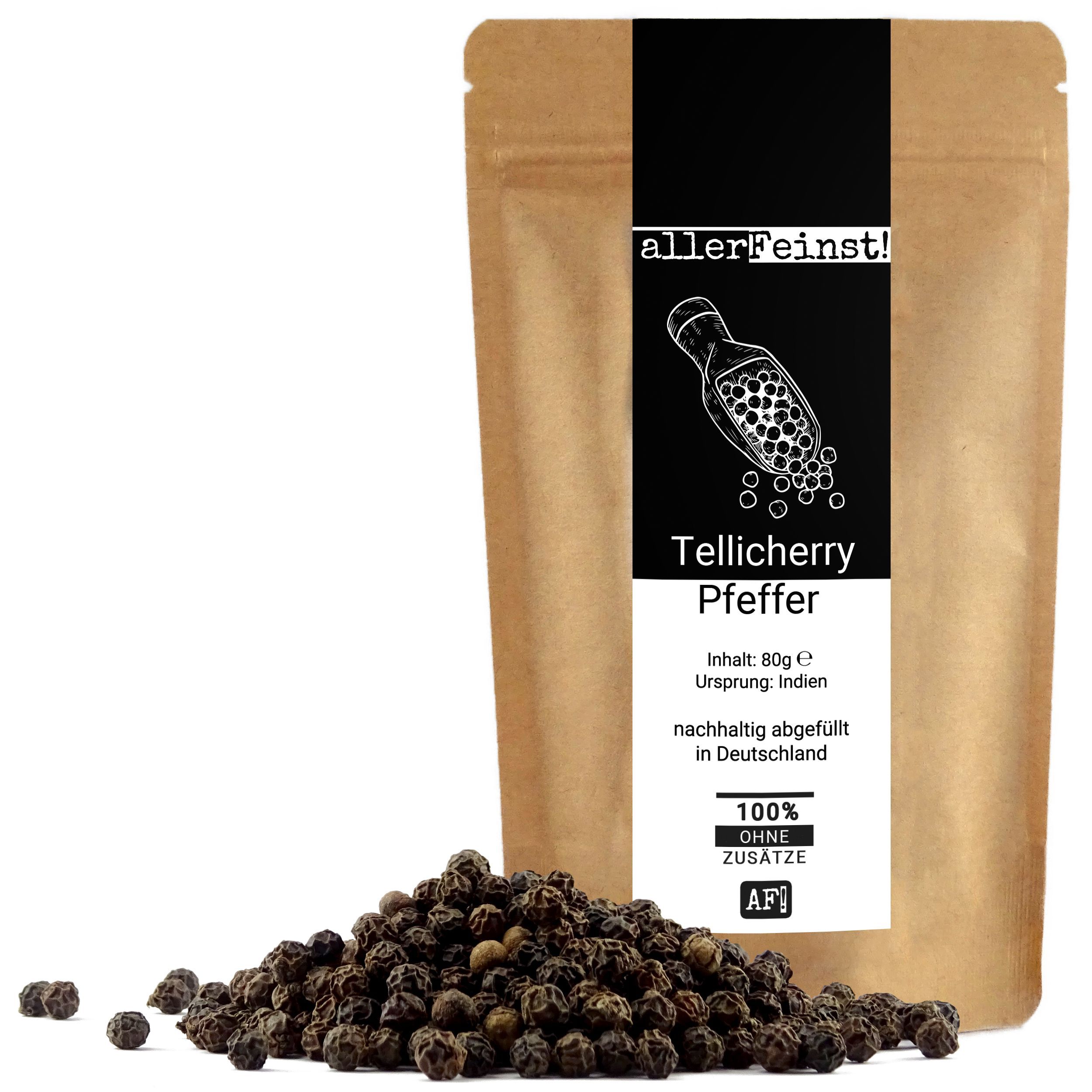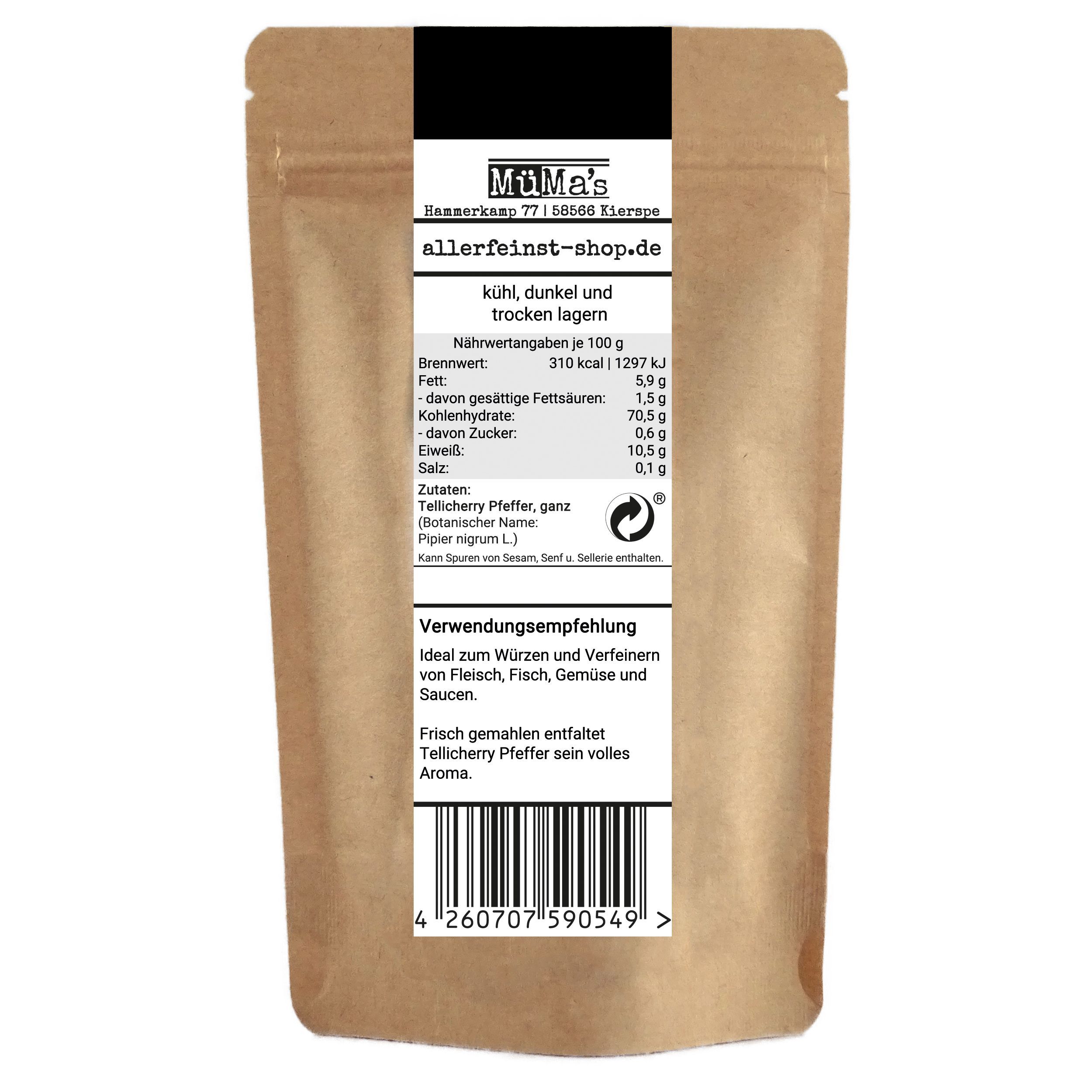 schwarzer Tellicherry Pfeffer ganz | Aromatisch, nussig & leicht scharf - 80g