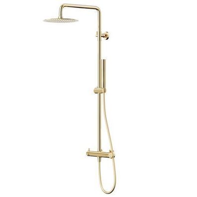 • Duschsäule LUGO Duschsystem, Brausegarnitur in Gold, Thermostatisch, Regendusche