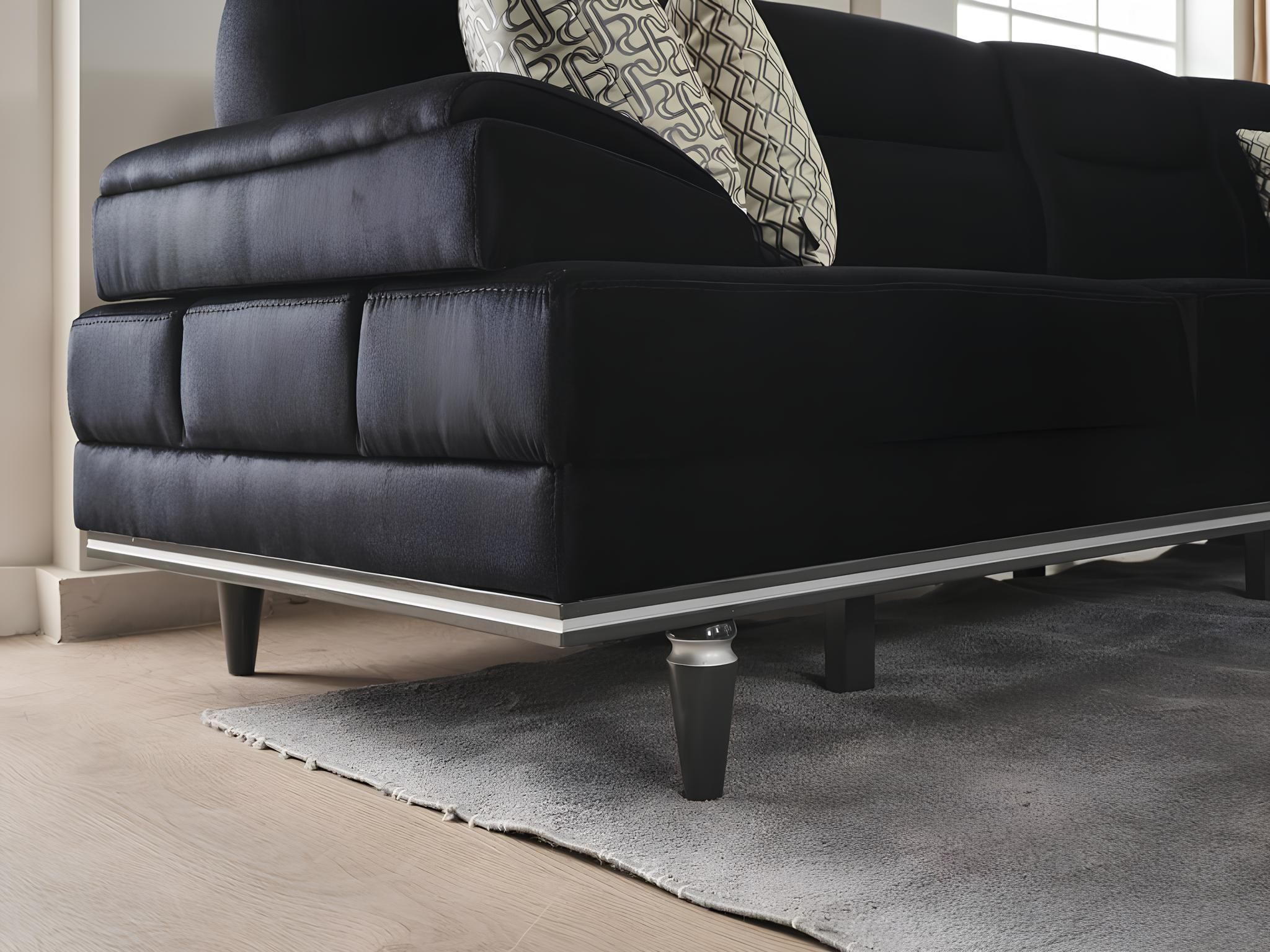 Schwarzes Ecksofa Design Textil Couchen Polster Möbel Wohnzimmer Couch
