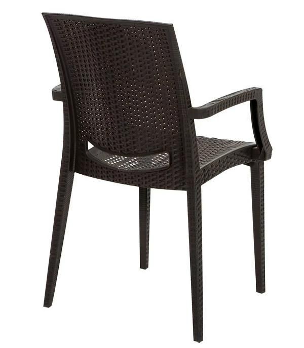Schwarzes Gartenmöbel Set Designer Rattan Stühle Edler Glastisch
